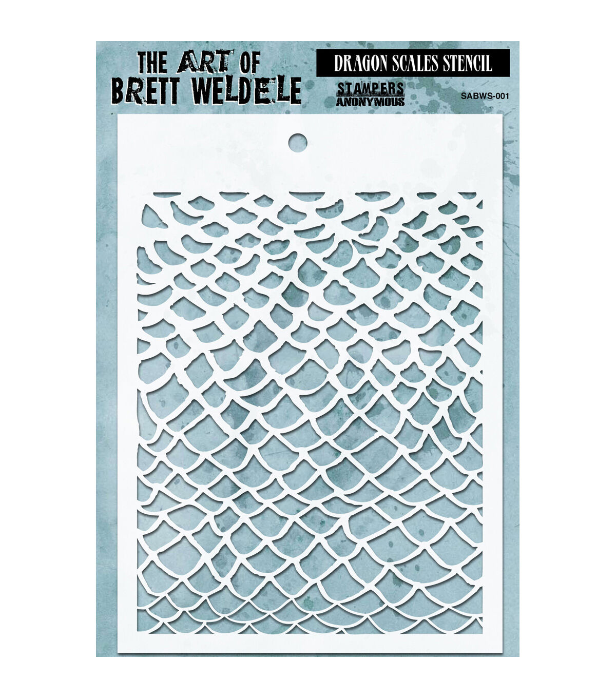 Add wonderful detail and texture to your art and craft projects with the Stampers Anonymous Brett Weldele Stencil-Dragon Scales. This pack contains one artistic stencil designed by celebrated comic book artist Brett Weldele. It is perfect for scrapbooking, card-making, sponging, spraying, chalking, spritzing and other mixed media projects. Use it to enhance the visual appeal of greeting cards, special-occasion invites, bookmarks, gift bags and more.