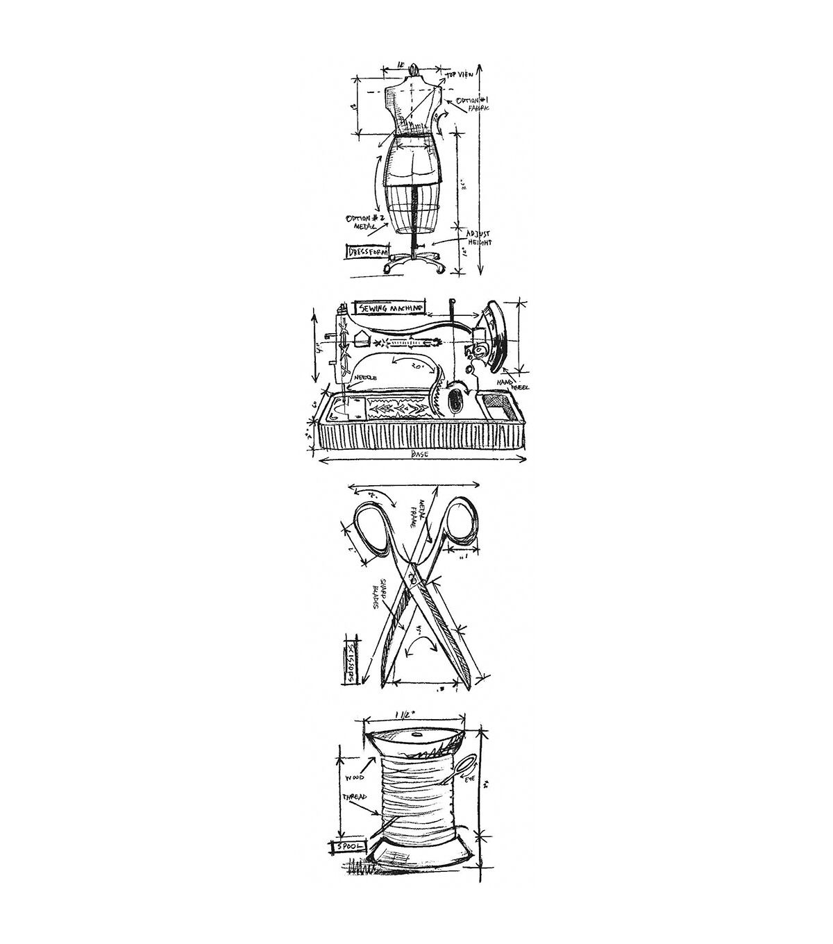- Dimensions: 1.63 x 2 inches (dress); 1.38 x 2 inches (scissors); 2.5 x 8.5 inches (stamp)