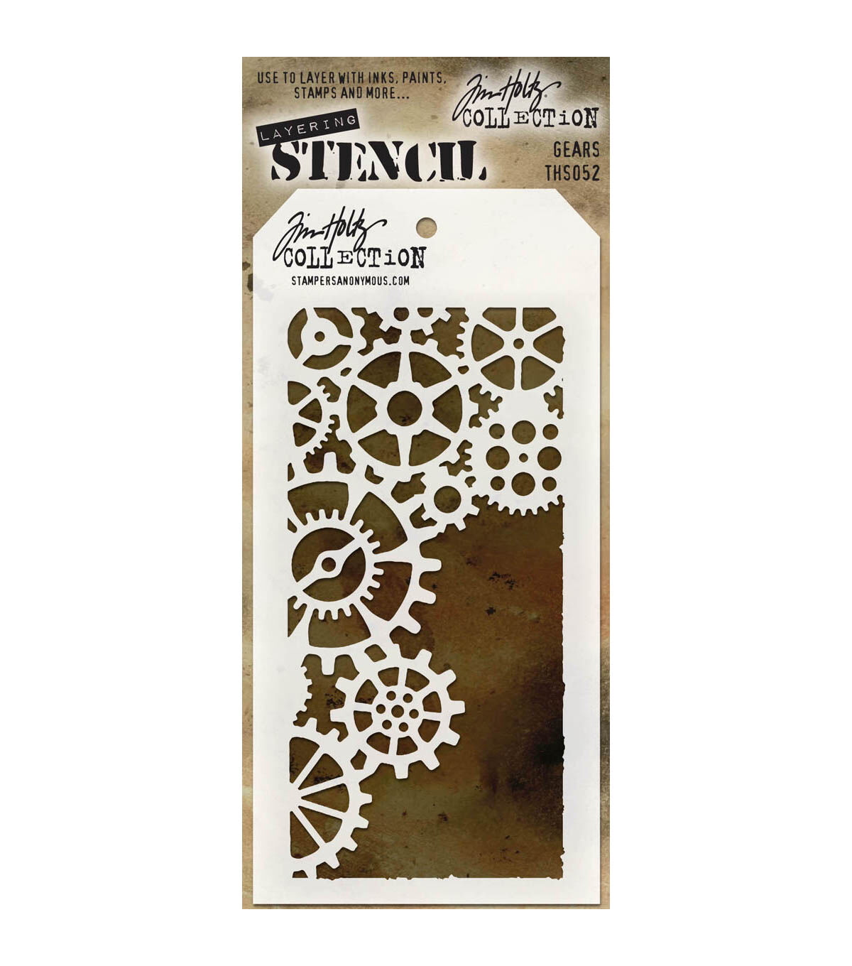 Lend a fun texture to your craft creations with the Stampers Anonymous Tim Holtz Layering Stencil-Gears. It features a unique gears design that will elevate the look of your DIY projects. You can use it to layer with inks, paints, stains and stamps. This pack contains one tag-shaped stencil that’s perfect for a variety of paper crafting projects. Team it with other stamp or stencil designs by Tim Holtz, sold separately, to create lovely vintage-themed projects.