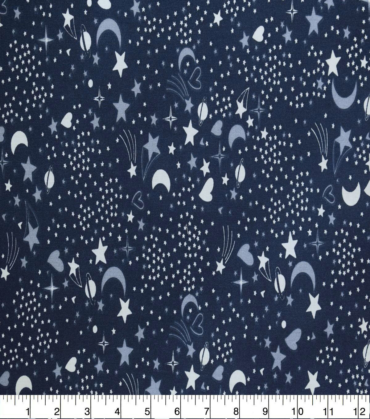 Stars & Moon on Navy Quilt Cotton Fabric by Quilter's Showcase