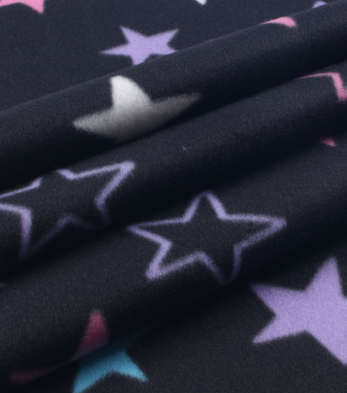 Our Stars on Black Blizzard Fleece Fabric is available in a wide variety of patterns, colors, and sizes, making it easy to find the perfect match for your project. Plus, it's a popular choice for DIY no-sew throw kits! Simply purchase two pieces of Blizzard Fleece Fabric by the yard, cut 7 inches around the edges, and knot the ends together to create a warm and fleece blanket for yourself or as a thoughtful gift during the holiday season.