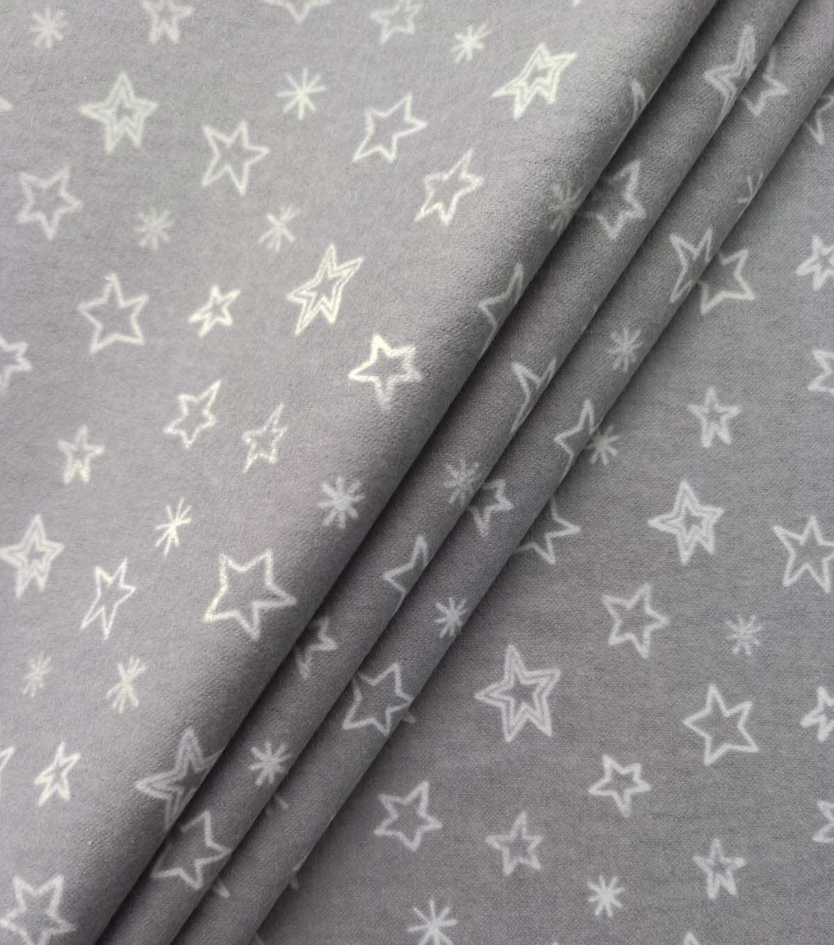 Stars on Gray Nursery Flannel Fabric