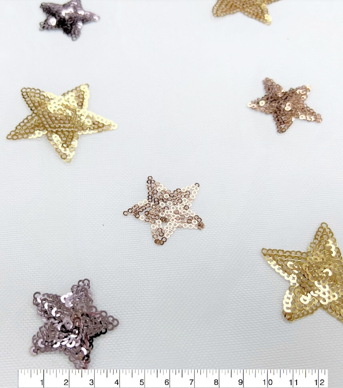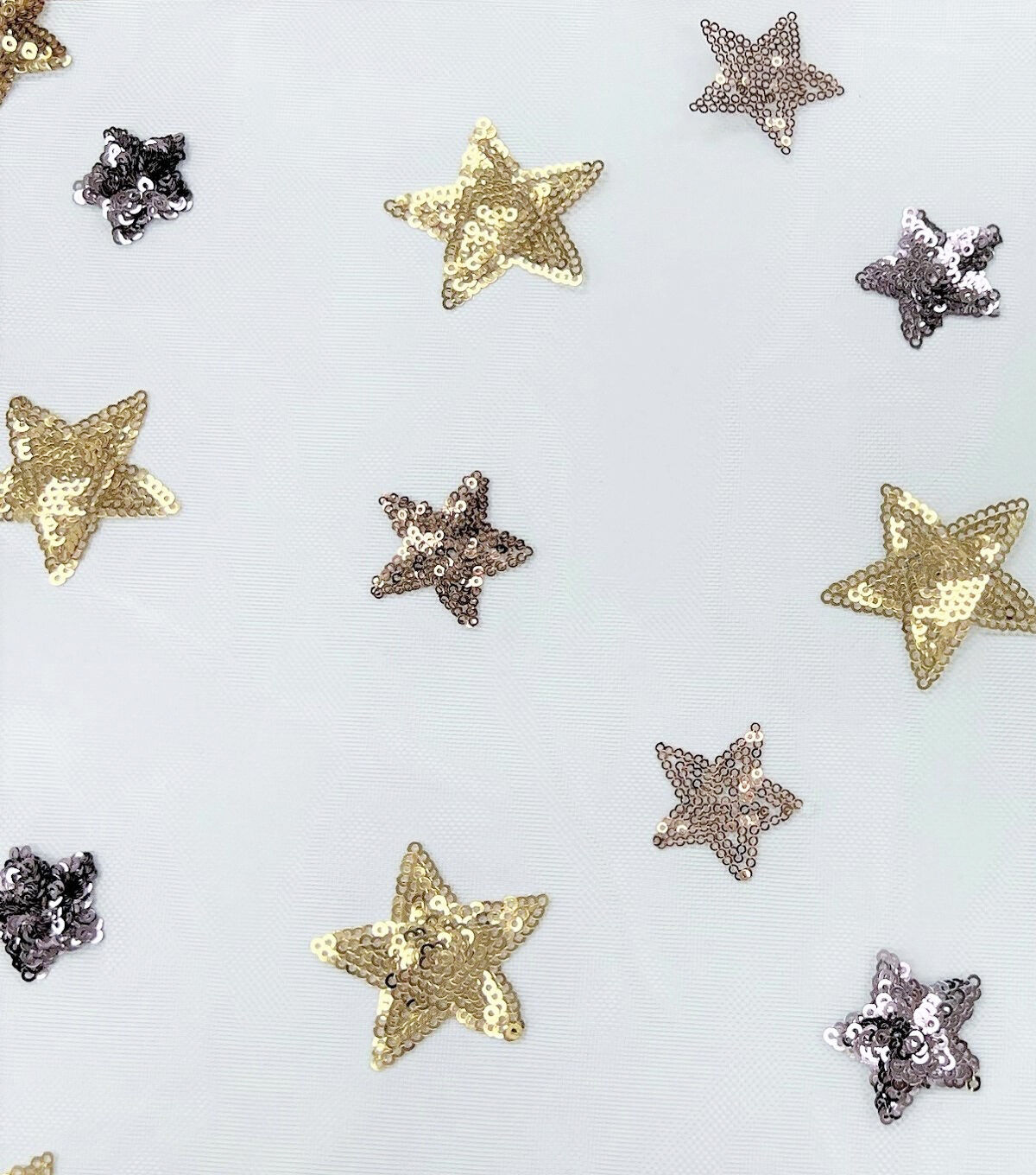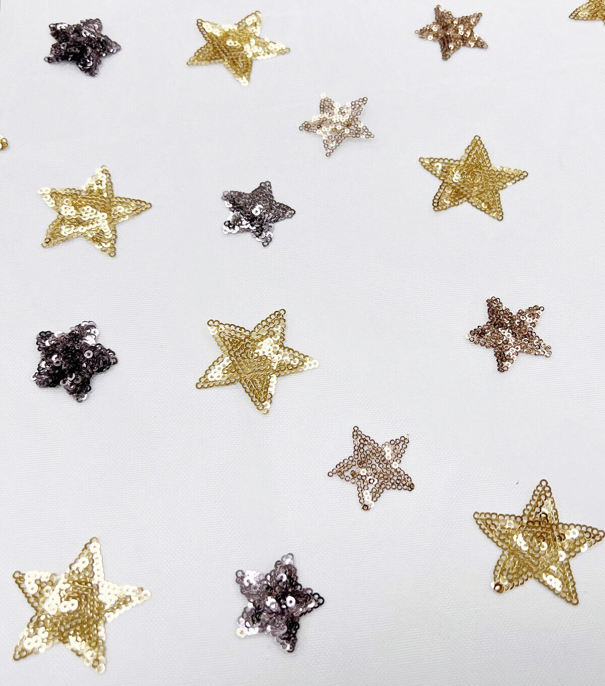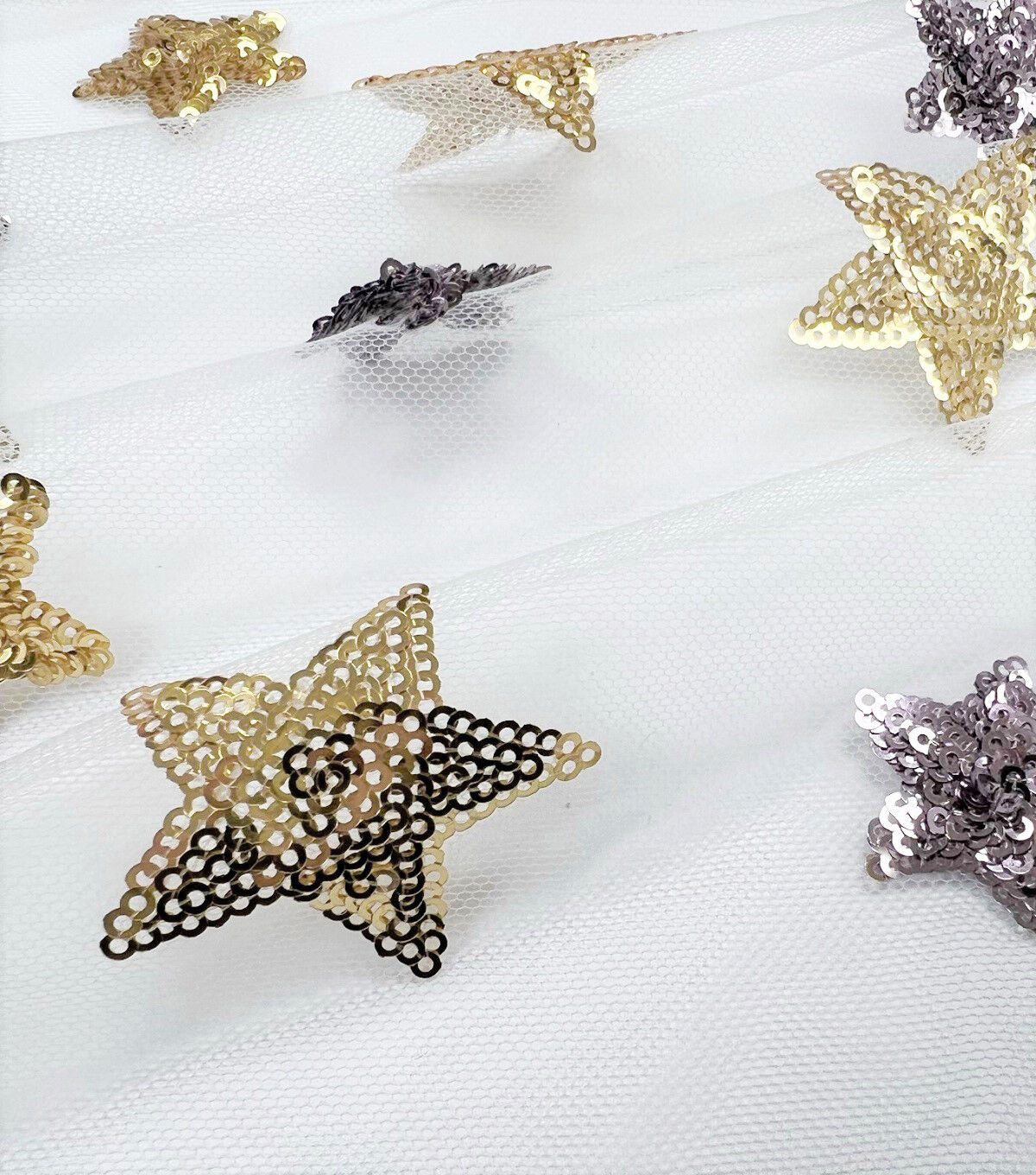 • Stars on White Sequin Tulle Fabric by Sew Sweet