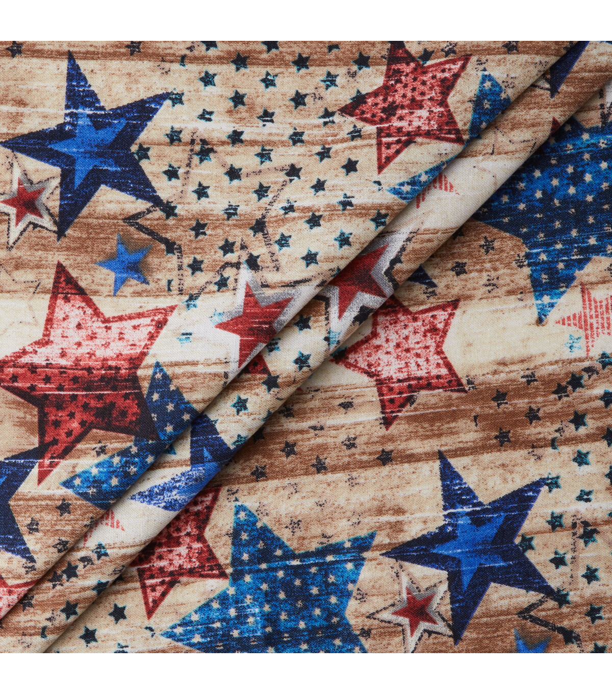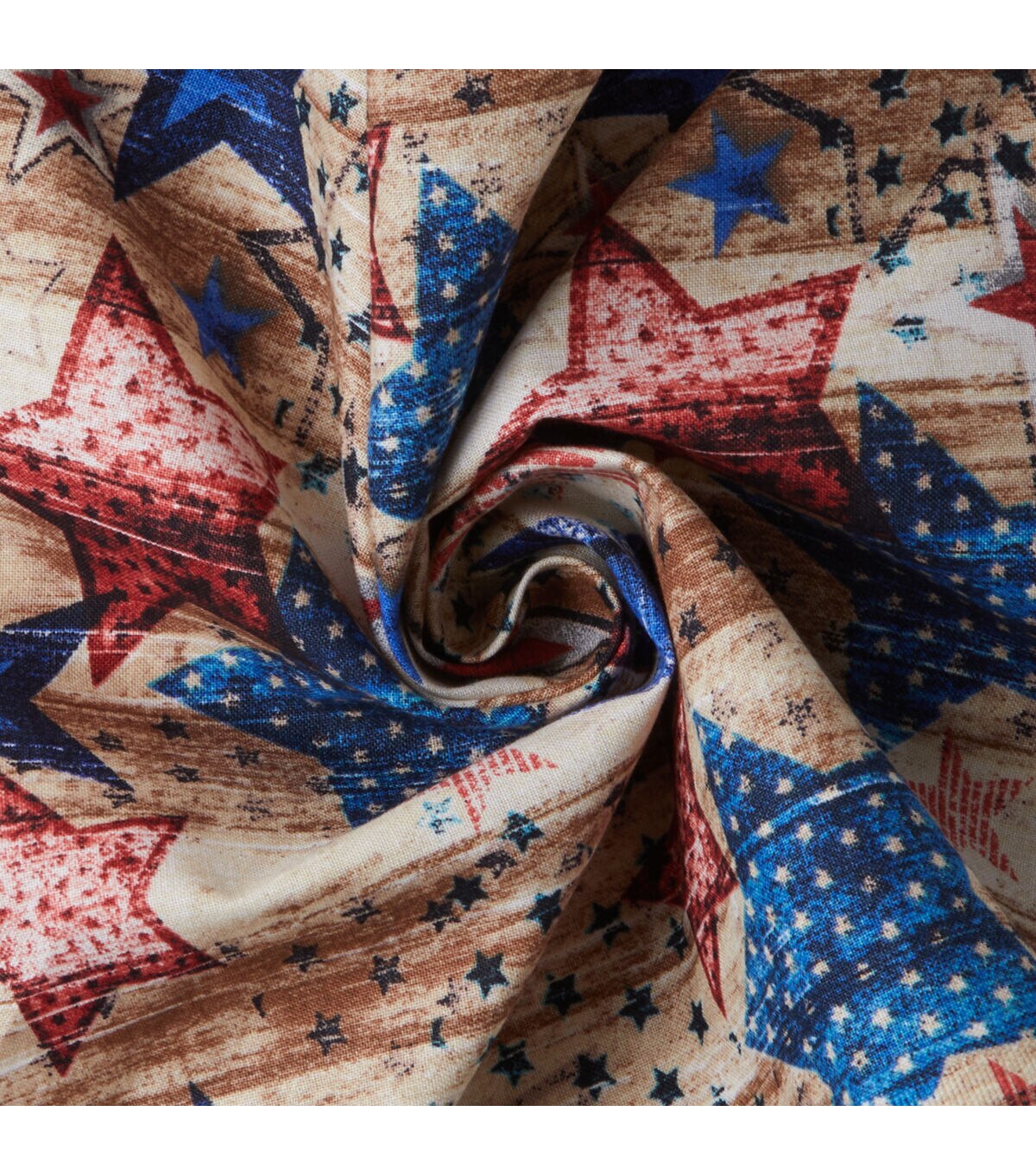 Stars on Wood Planks Cotton Fabric 43'' Patriotic Cotton Fabric