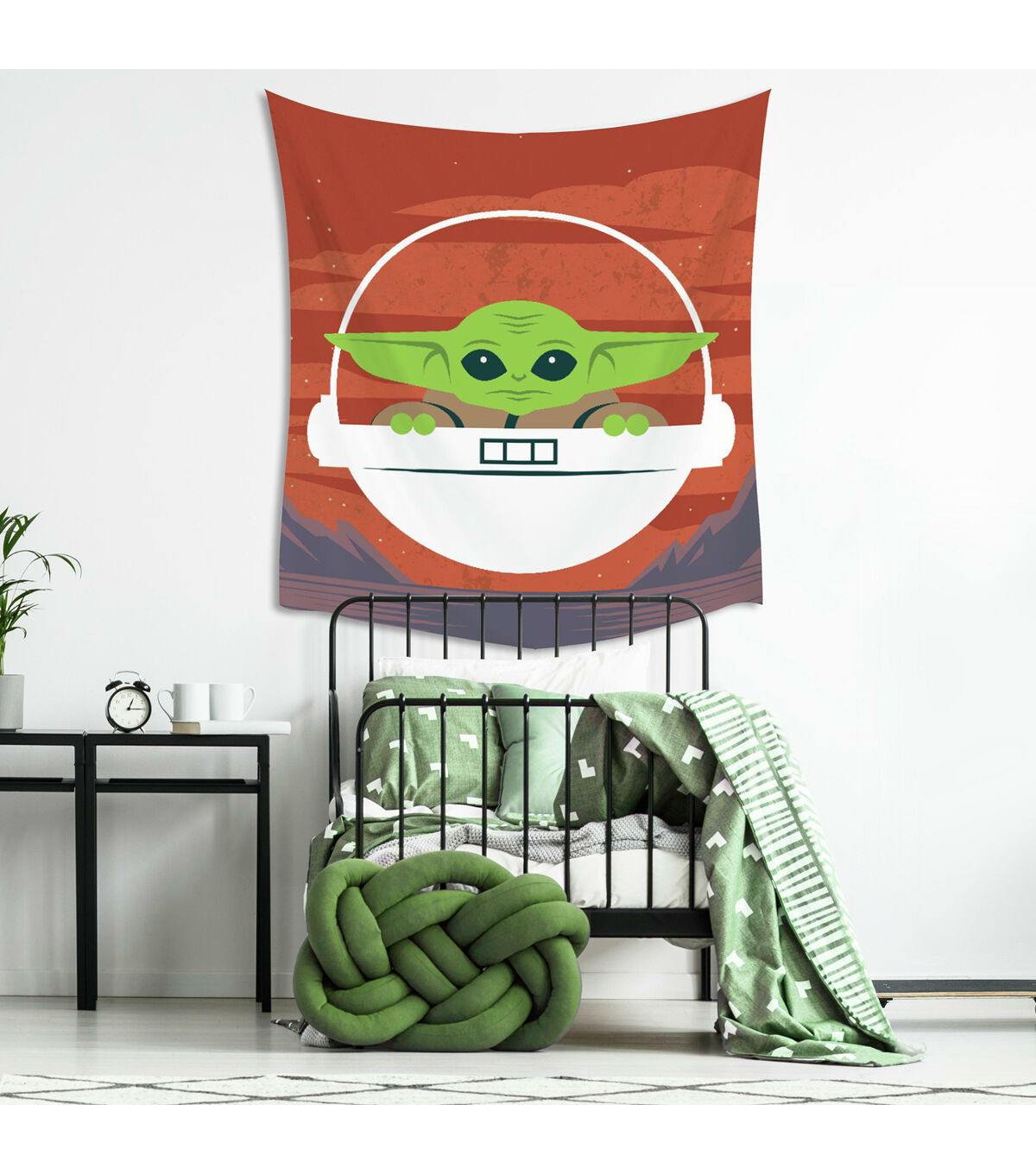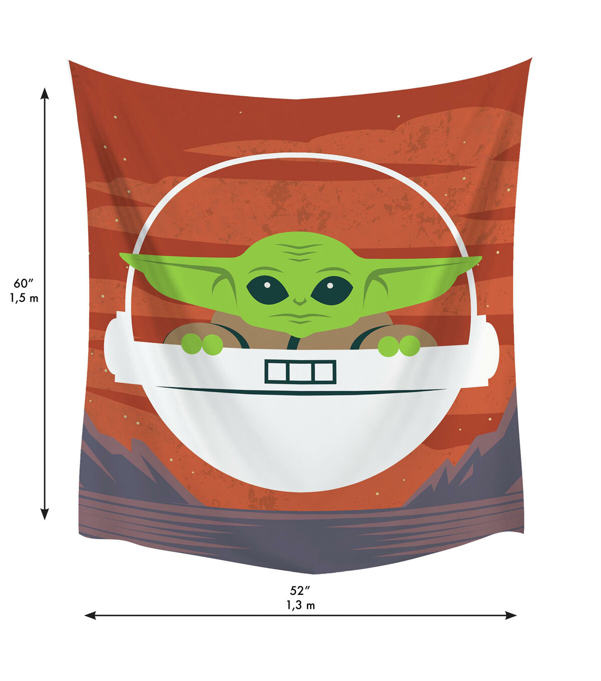 The Child wall tapestry by RoomMates brings your favorite character, Grogu – or Baby Yoda as some like to call him - from Star Wars’ The Mandalorian, into prominent display on your walls. The Child is featured is his bassinet in a sienna sky with soft purple shadows covering the land. 60” high and 52” wide the wall hanging is easy to install (simply use a couple of thumb tacks/push pins). RoomMates tapestries are an effortless way to decorate in minutes. Great for bedrooms, office space, dorms, man caves, etc. 52 inches x 60 inches