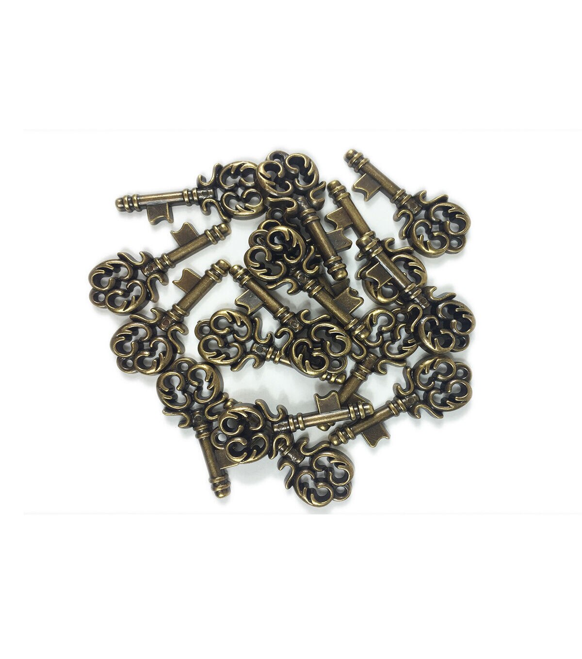 Add visual charm to your sewing projects with the Steampunk Keys Embellishments Antique Gold. These key-shaped buttons are made of metalized plastic and sport an antique gold tone. You can add them to dresses, tops, tees, bags and more for decorative and fastening purposes. Team them with coordinating buttons for added visual appeal.