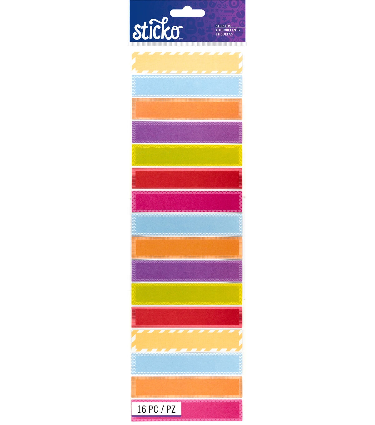 Lend a bright touch to your craft projects with the lovely Sticko Organization Label Stickers-Colorful. Use these colorful labels on anything from mason jars and office supplies to notebook dividers and more. You can add personalized messages to these vibrant organization labels and stick them onto an array of your creative projects for visual flair. Each pack includes 16 label stickers.