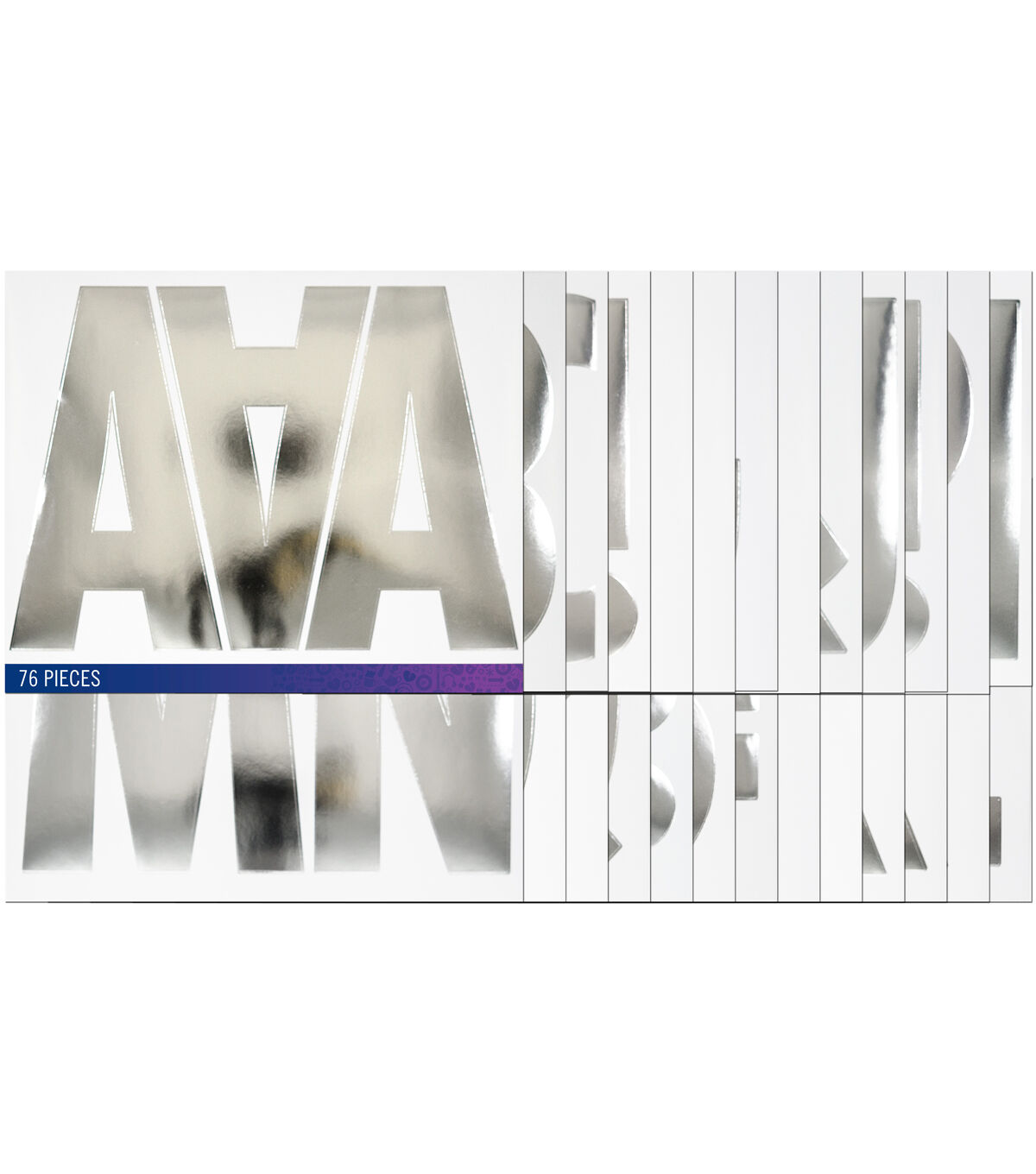 Add a spark to your creative projects with the Sticko Regular Futura Jumbo Foil Alphabet Stickers-Silver. This sticker pack includes the entire alphabet in all caps plus some punctuation marks. The super letter size gives a bold look to signs and posters. Simply peel and stick them onto your project media to add a personalized touch.