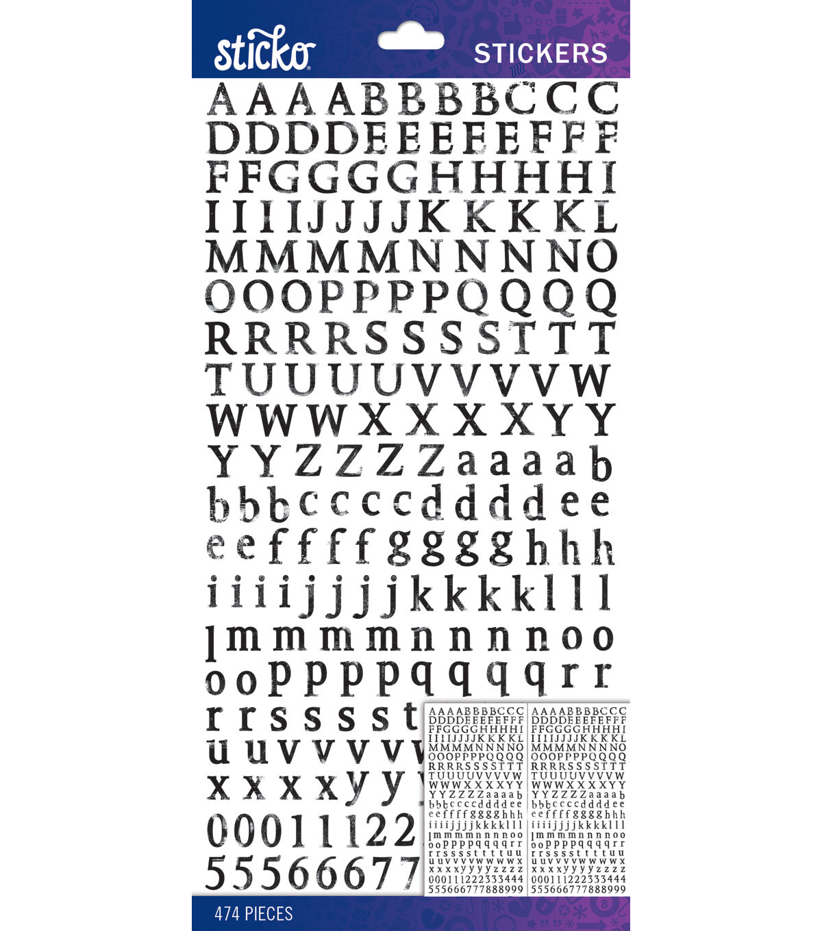 With Sticko - Black Distressed Octavian Small Alphabet Stickers you can add a fun message cards, notebooks, photo albums, journals, and more. These stickers are ideal for personalizing any project with your own unique message.