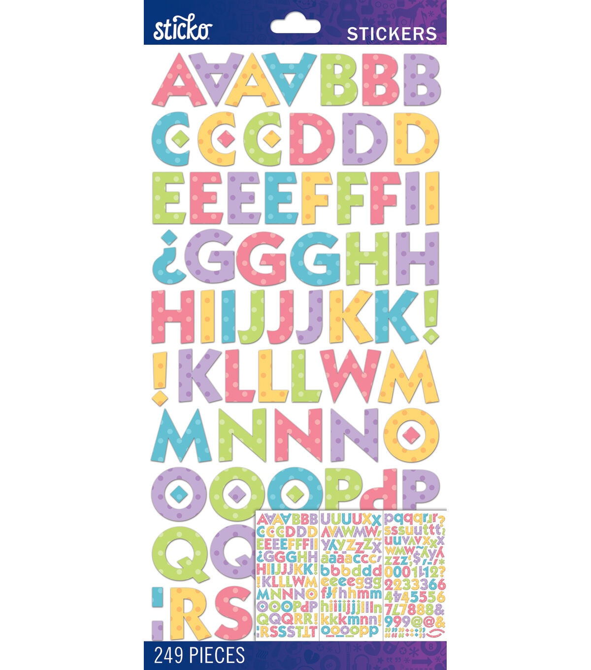 With Sticko - Bright Dots Kable Medium Alphabet Stickers you can add a fun message cards, notebooks, photo albums, journals, and more. These stickers are ideal for personalizing any project with your own unique message.