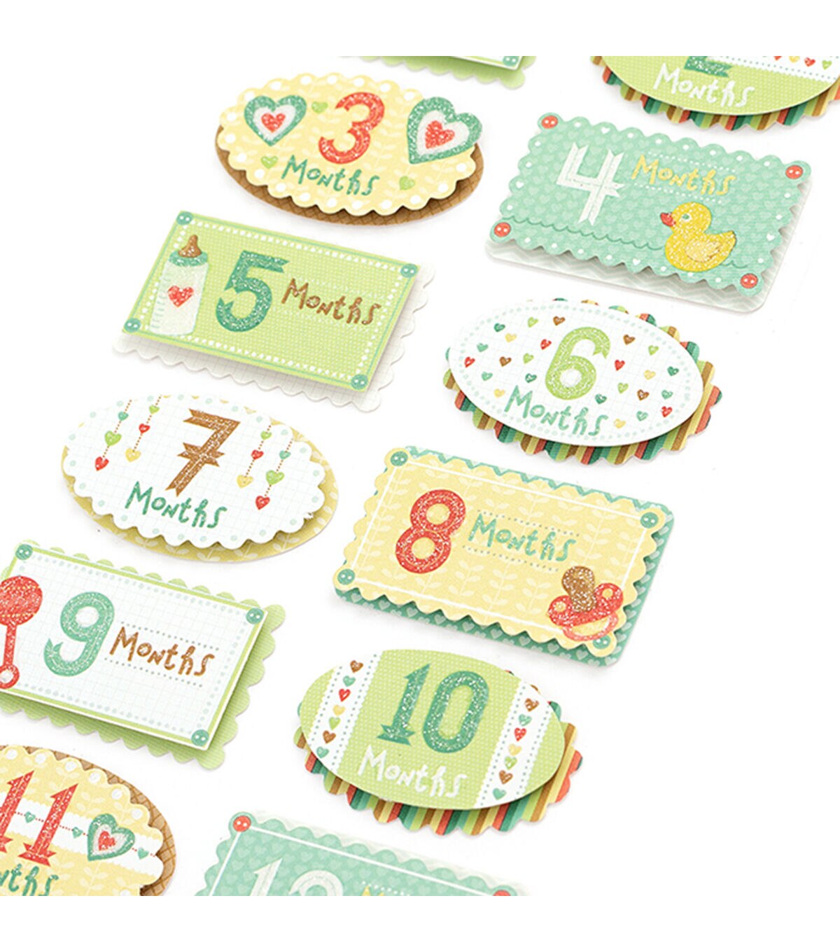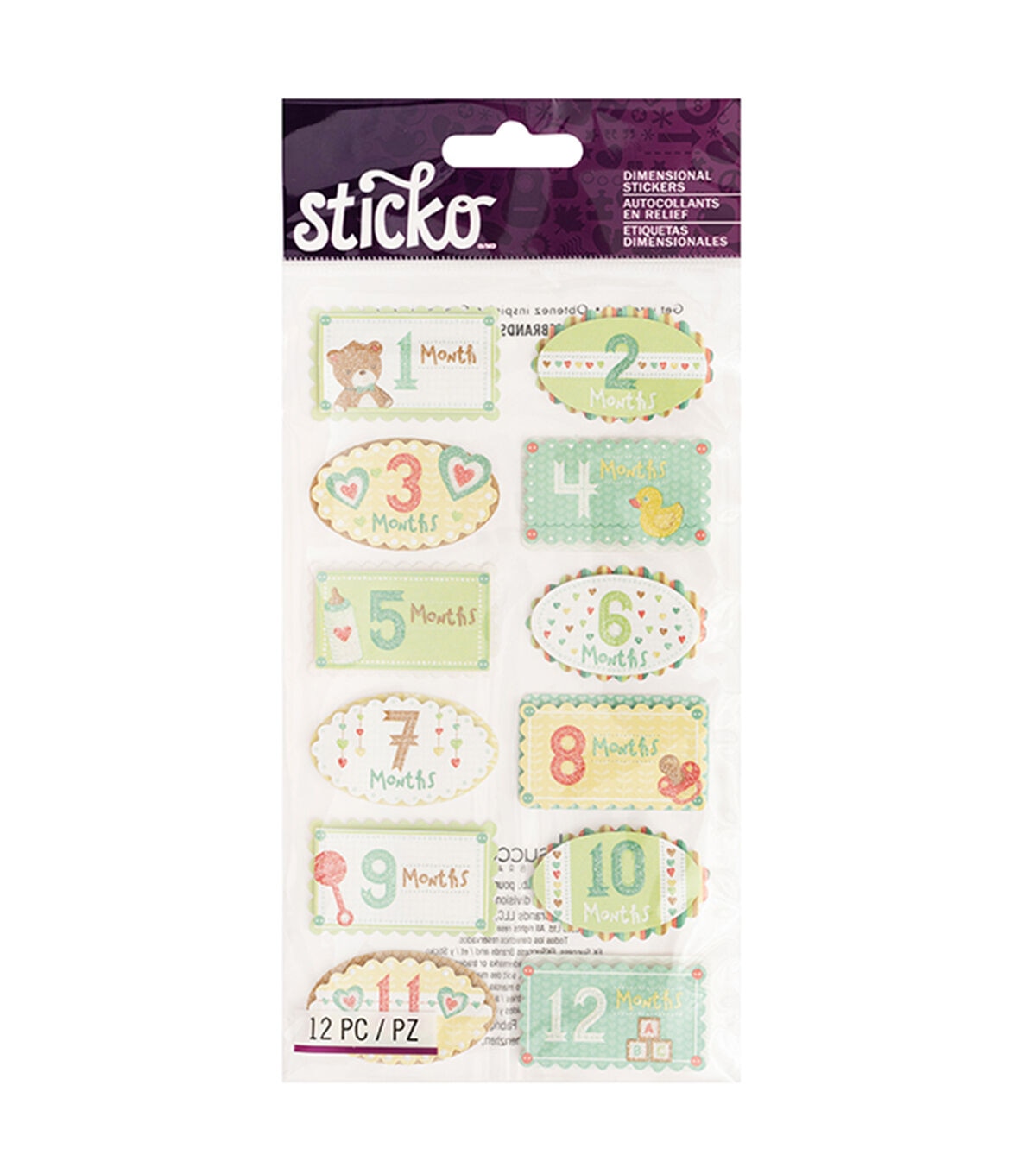 Sticko Stickers are known for their unique styling and broad range of eye-catching designs in a variety of materials, sizes, colors and shapes. These Baby's First Year stickers are no exception! Sure to delight, these stickers are versatile and ready to add to any project you like.