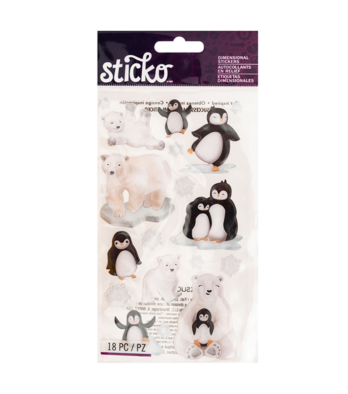 Sticko Stickers are known for their unique styling and broad range of eye-catching designs in a variety of materials, sizes, colors and shapes. These Penguin and Polar Bear stickers are no exception! Sure to delight, these stickers are versatile and ready to add to any project you like.