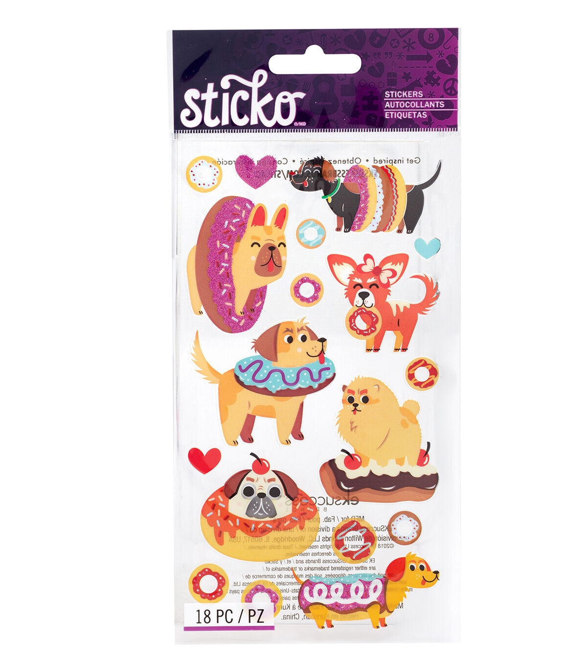 Bold, bright stickers by Sticko are perfect for adding a bit of dimension and a splash of color to your projects! Each one is sure to be an adorable addition to your scrapbooks, cards, planners, journals, and more! This package includes 18 dimensional dog and donut stickers.