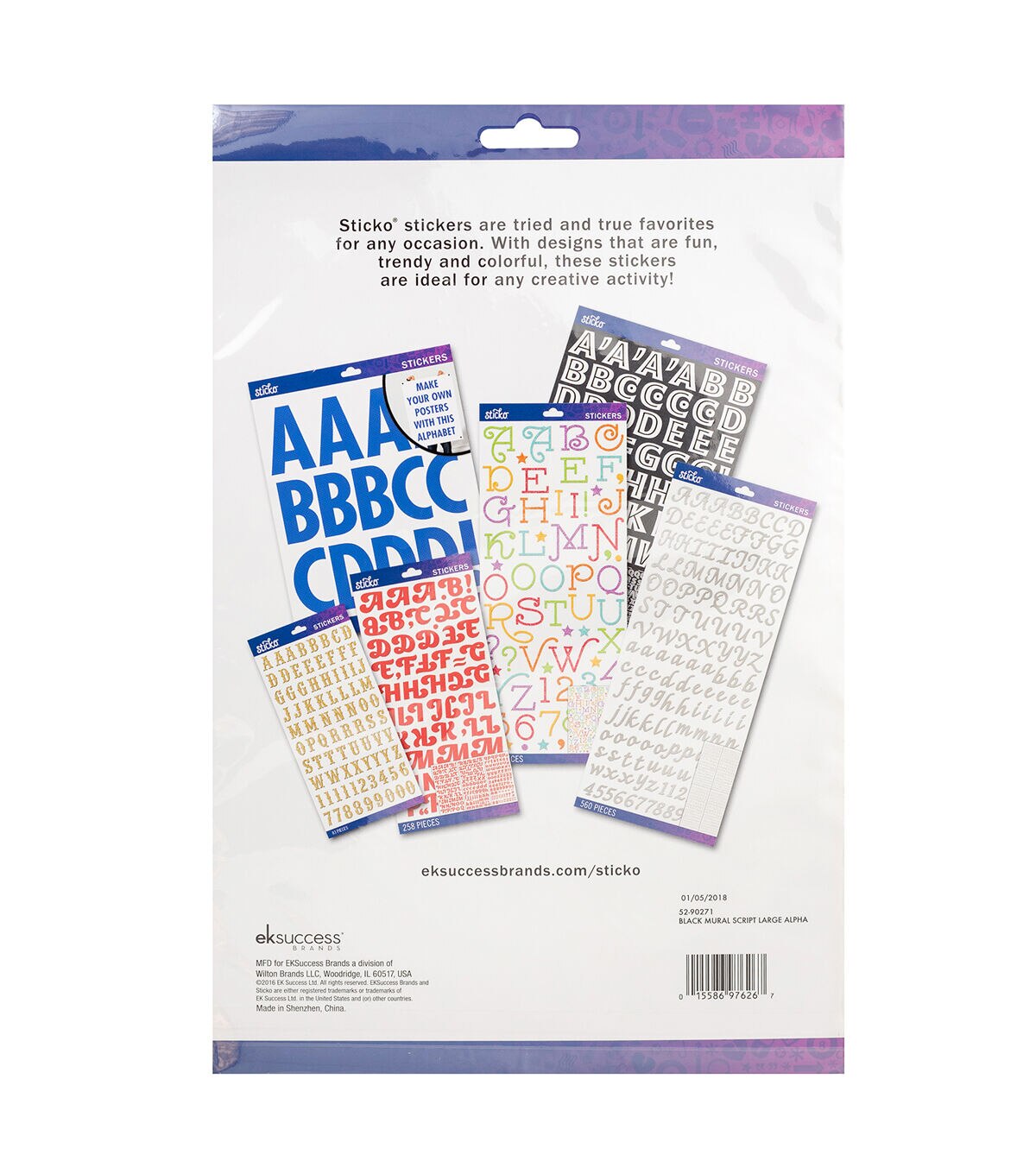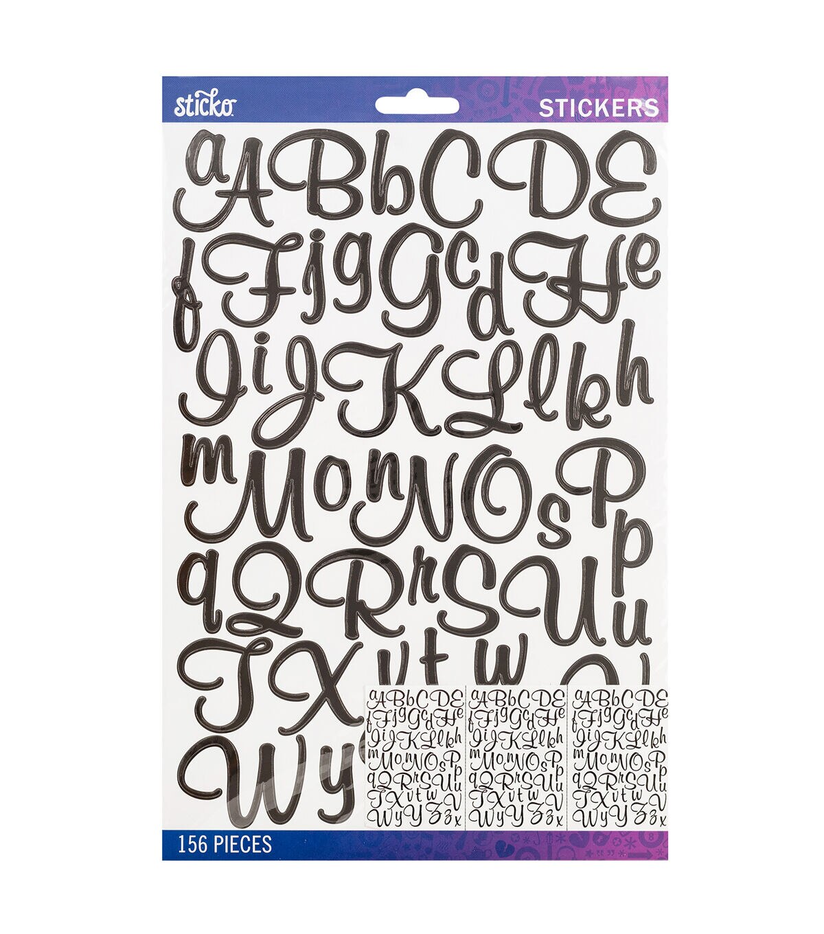 Add a spark to your creative projects with Sticko stickers! Sticko offers a broad variety of subjects and styles with a designer's eye for detail and trend. Our Black Mural Script Large Alphabet Stickers include the entire alphabet in upper and lower case. Great for all your creative projects that want personalization.