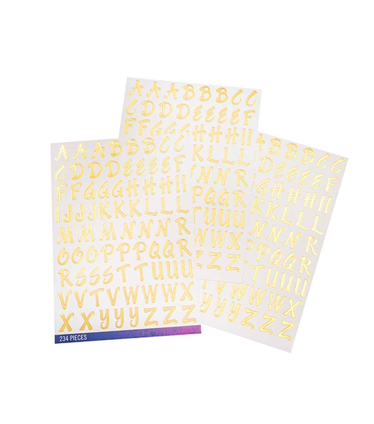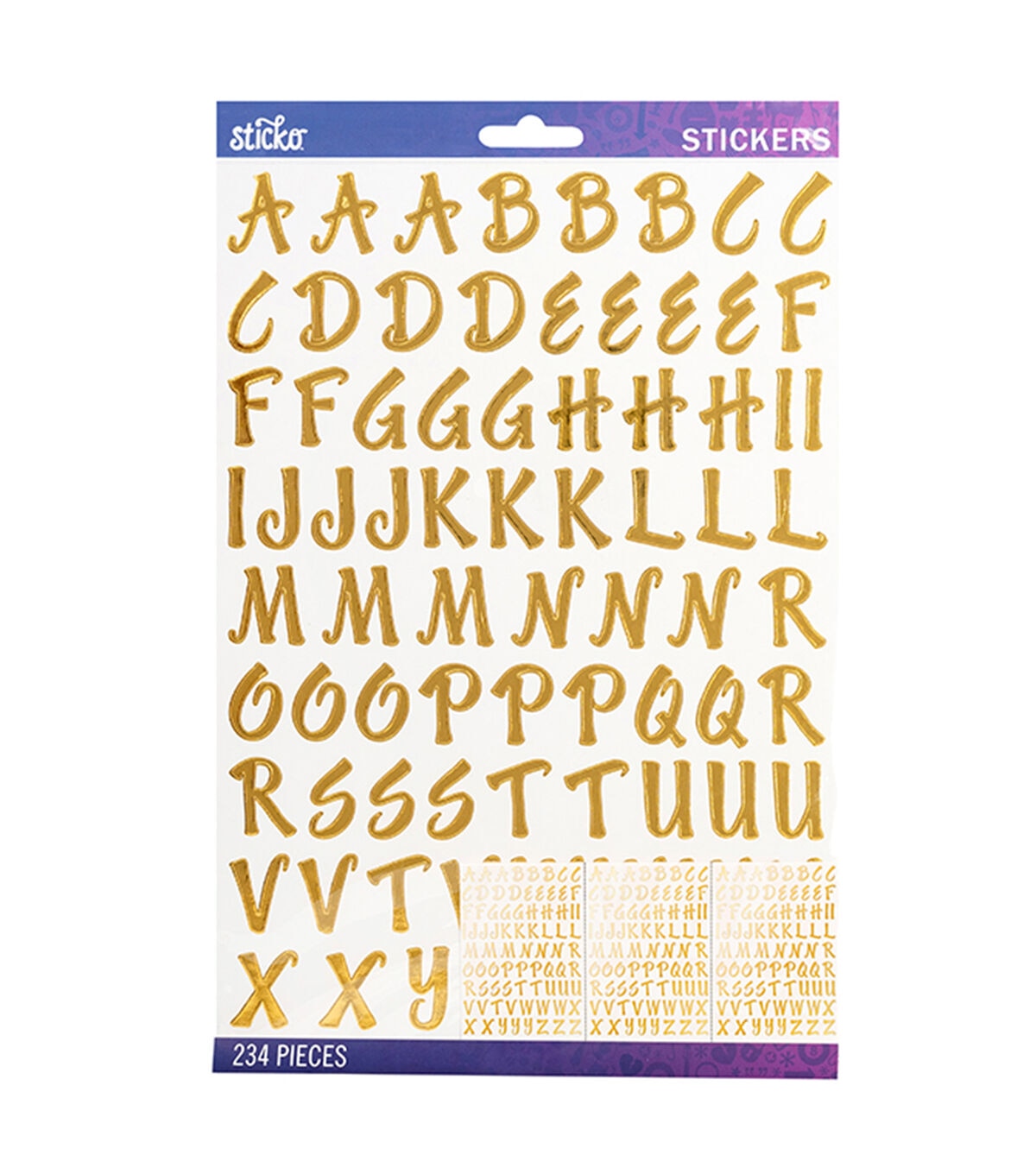 Add a spark to your creative projects with Sticko stickers! Sticko offers a broad variety of subjects and styles with a designer's eye for detail and trend. Our White Funkydori Large Alphabet Stickers include the entire alphabet in upper and lower case plus numbers and punctuation. Great for all your creative projects that want personalization. This package includes 135 gold foil stickers, each measuring 1 inch.