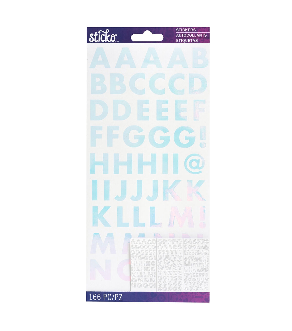 Customizing your projects is as easy as A-B-C with alphabet stickers by Sticko! Create custom words and phrases for scrapbooks, cards, gifts and so much more by mixing and matching letters, numbers, and punctuation marks. This package includes 166 silver foil small alphabet stickers.