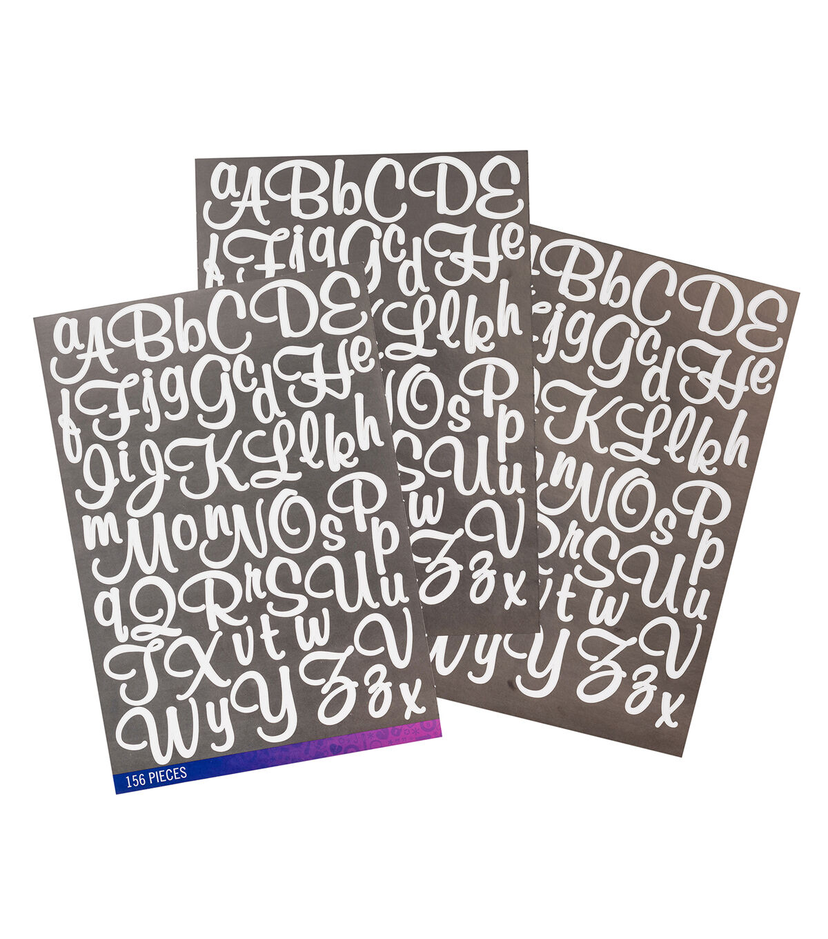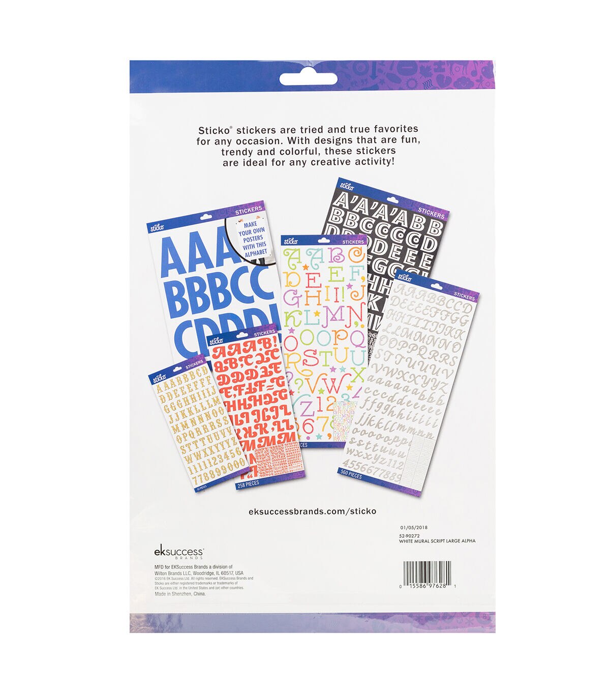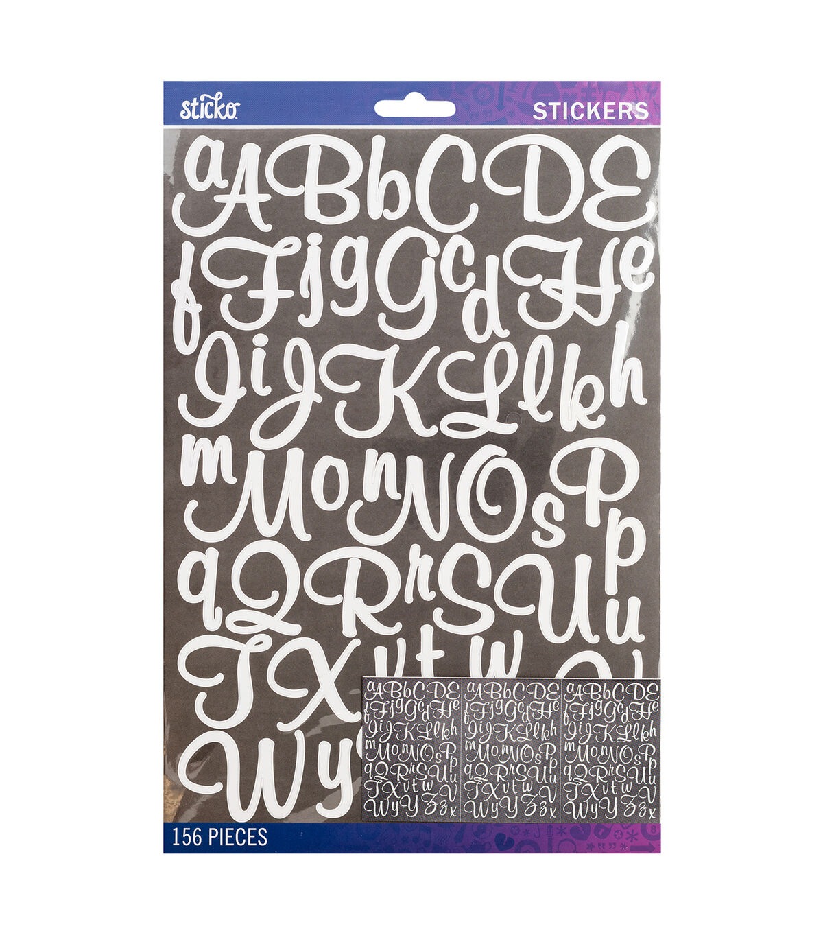 Add a spark to your creative projects with Sticko stickers! Sticko offers a broad variety of subjects and styles with a designer's eye for detail and trend. Our White Mural Script Large Alphabet Stickers include the entire alphabet in upper and lower case. Great for all your creative projects that want personalization.