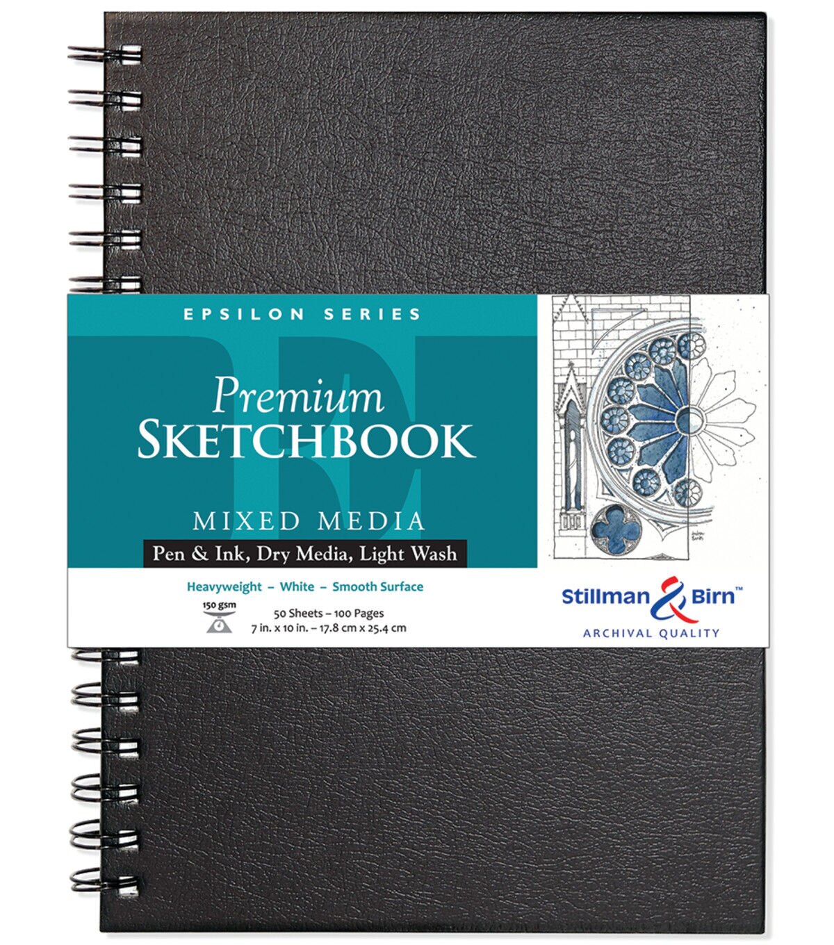 An ideal companion for fine artists, creatives, professionals and students alike, this hard-cover sketchbook features 50 sheets of high performance paper that is pH neutral, lignin- and chloride-free. The toothy surface is suitable for all dry media and ink; with both internal and surface sizing, each page accepts light washes as well. The cover is made with extra heavy-weight binders' board, a durable material that withstands everyday bumps and bruises, keeping your artwork safe and sound.
