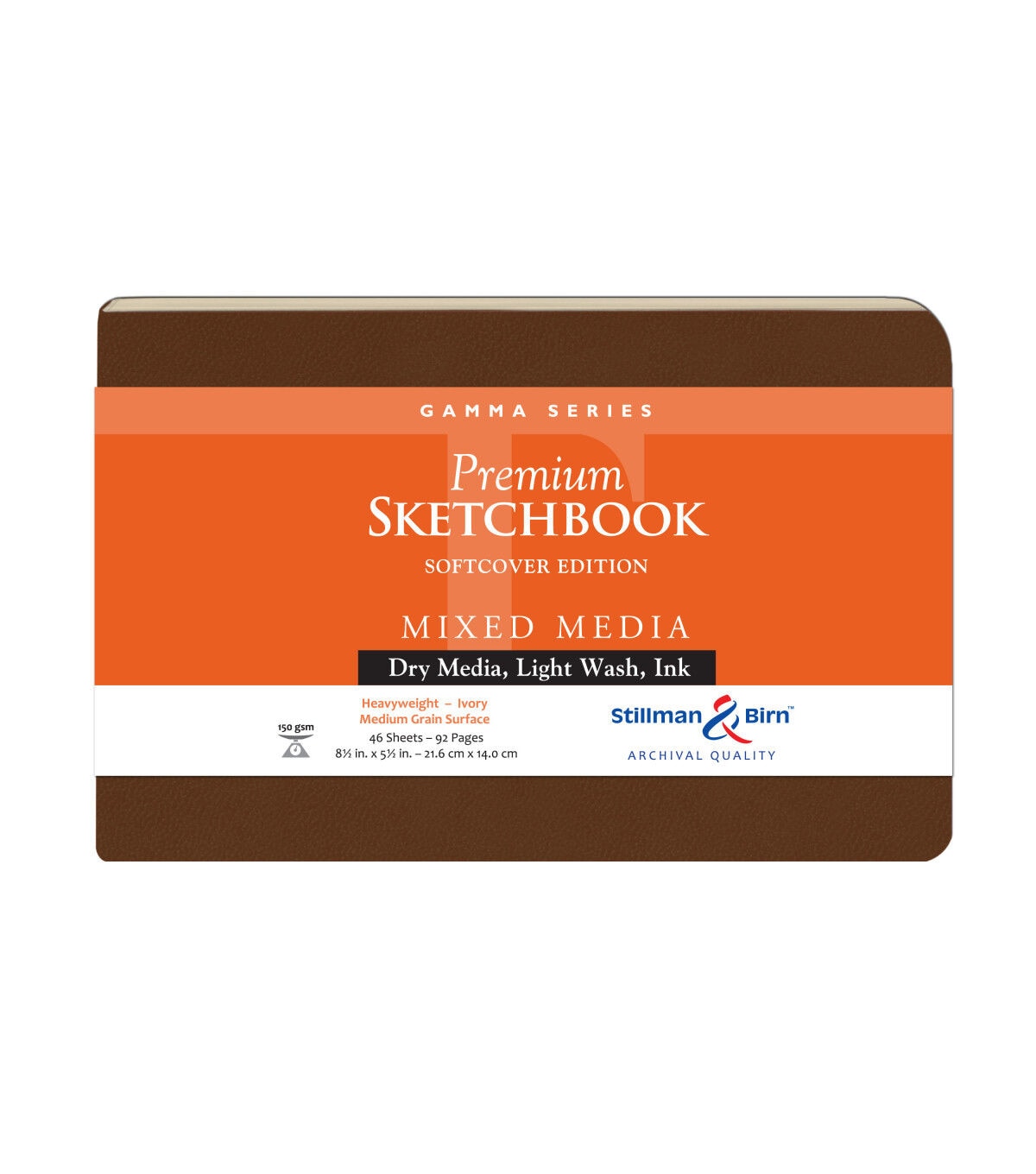 An ideal companion for fine artists, creatives, professionals and students alike, this soft-cover sketchbook features 46 sheets of high performance, pH neutral, lignin- and chloride-free that is suitable for all dry media and ink. With both internal and surface sizing, it will accept light washes as well. The flexible yet rugged cover has soft-bound sewn bindings and rounded edges to prevent fraying.