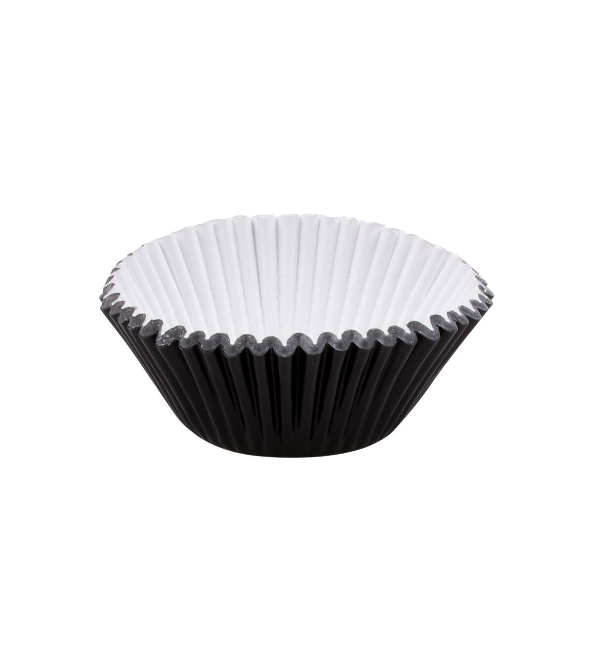 These sturdy baking cups are ideal companions for your cupcakes and muffins. The greaseproof surface is heat-resistant and nonstick for easy baking. These cups are also great for holding small snacks, like candies and nuts. Their shiny black foil adds glamour to any occasion, from birthdays and holidays to weddings and showers.