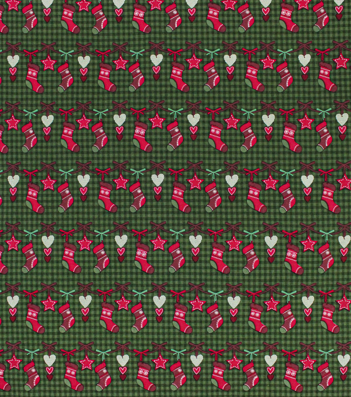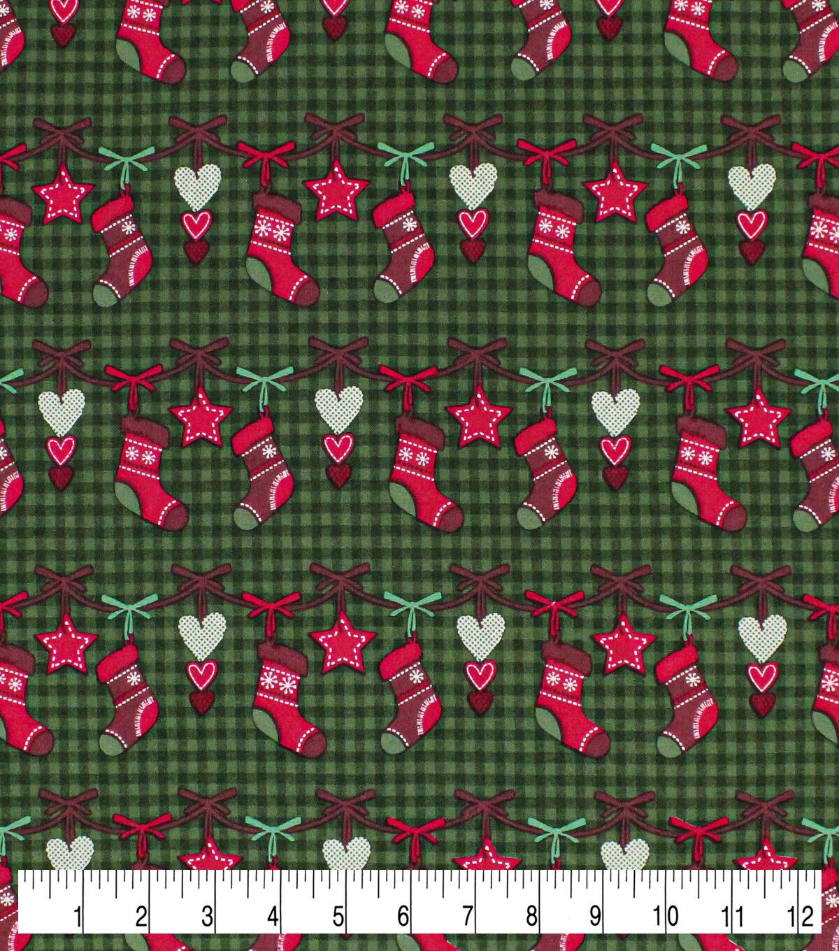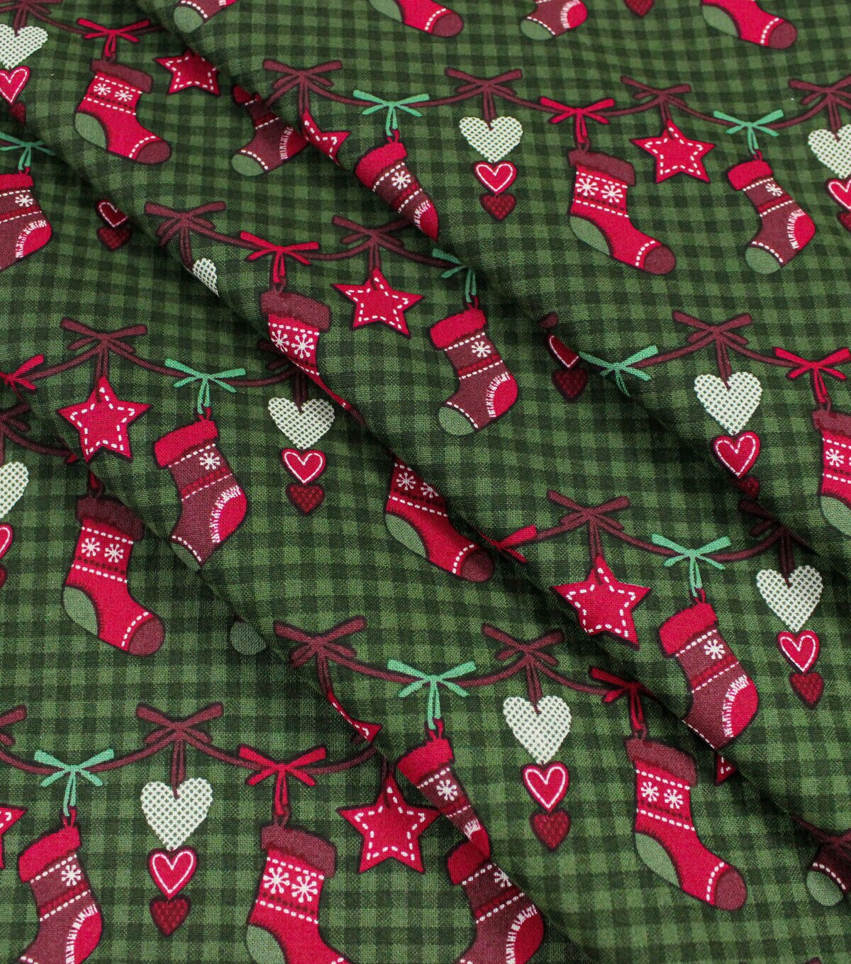 • Stitched Stockings on Checks Christmas Cotton Fabric