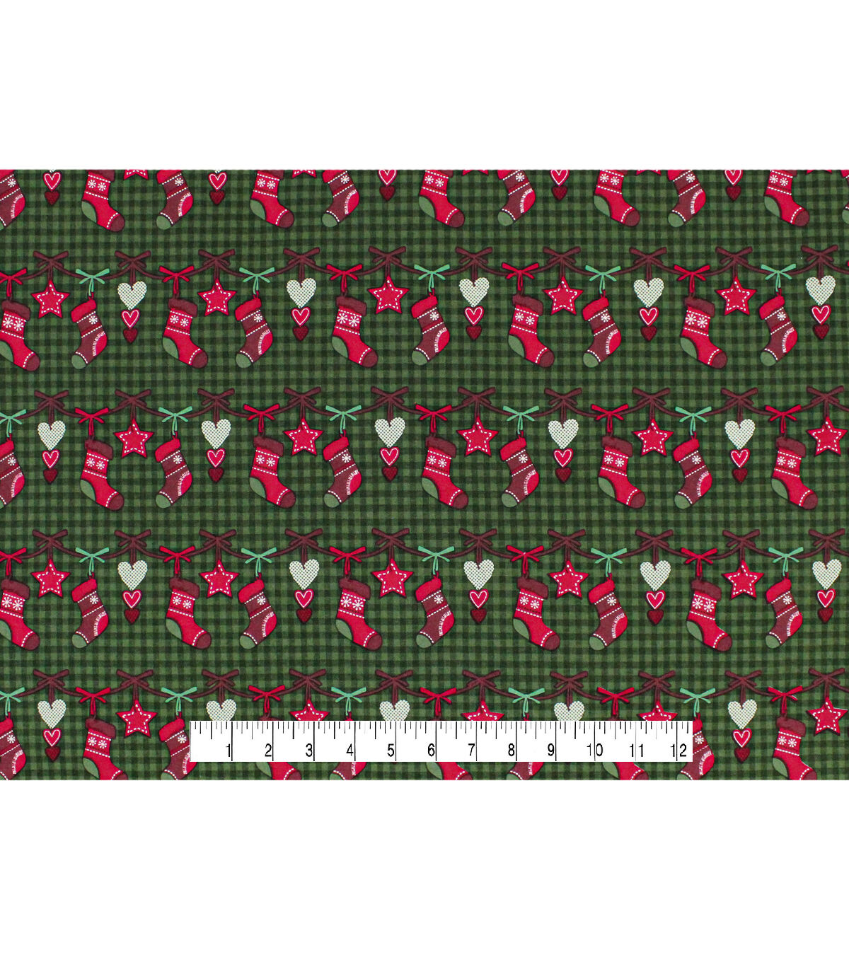 Stitched Stockings on Checks Christmas Cotton Fabric