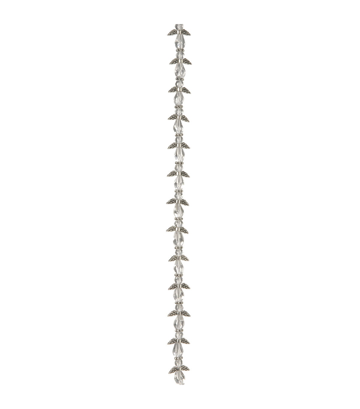 Silver angel wings with Aurora borealis finished crystal beads. 10mm beads. 7 inch strand. 1 strand per package.
