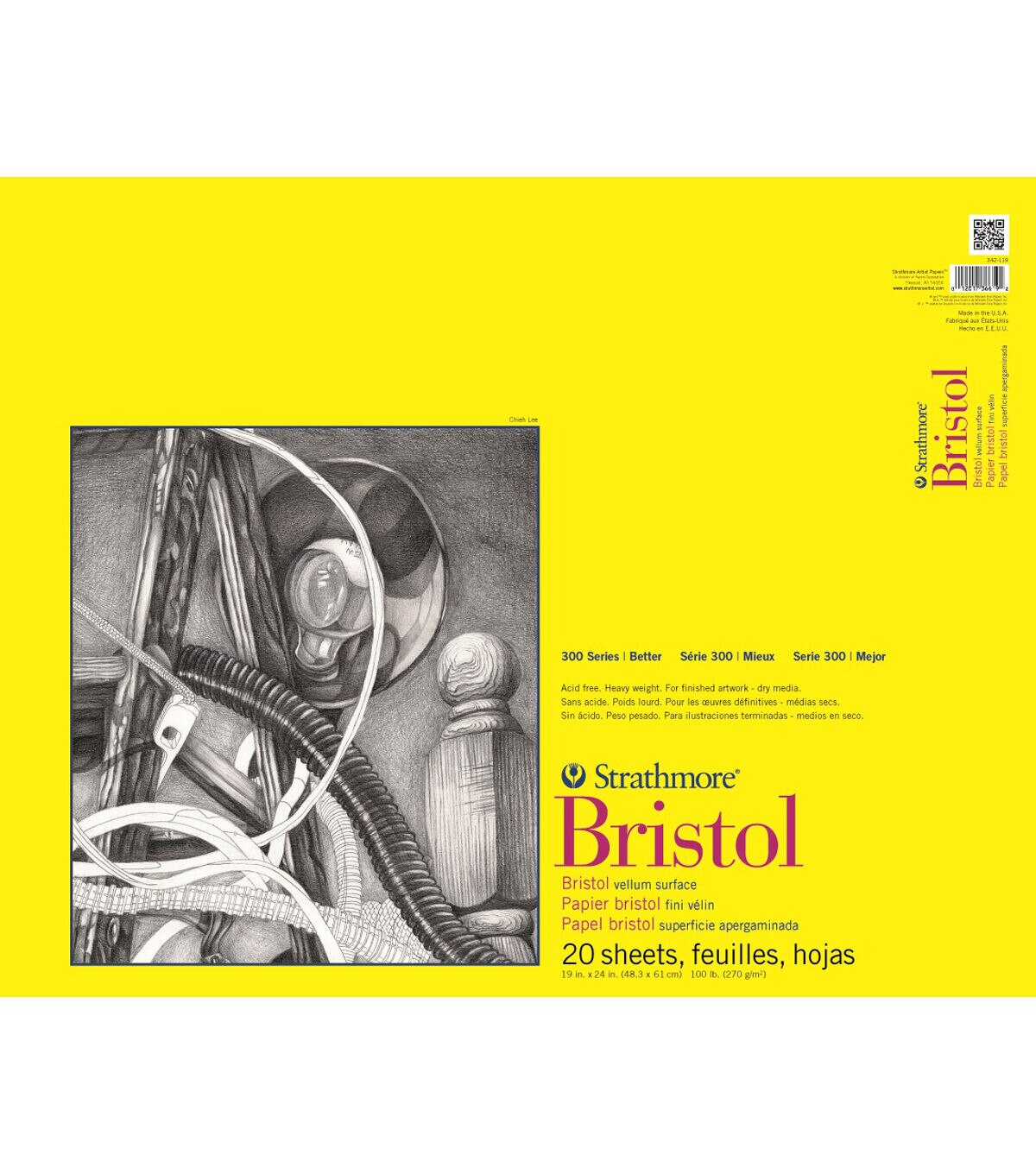 The Strathmore 300 Series Tape Bound Bristol Vellum Pad is the ideal pad for artists of all levels. With a 270-gsm surface that readily takes pencil, charcoal, sketching sticks, airbrush, marker, pen and ink, this tape-bound pad provides the perfect texture for realistic blending and shading with dry media. This pad is designed for finished artwork and allows for concepts and designs to flourish. It is acid free.