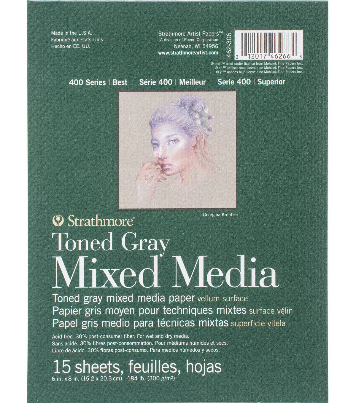 Strathmore 400 Series Mixed Media Paper Pad-Toned Gray combines the characteristics of a watercolor paper and the finish of a drawing sheet, creating a paper that performs for all wet and dry media. These heavyweight mixed media papers in cool gray are toned specifically for use with light and dark media. They are 100% recycled and acid free. This pack contains one 6 x 8-inch pad with 15 sheets of 184 pound paper.