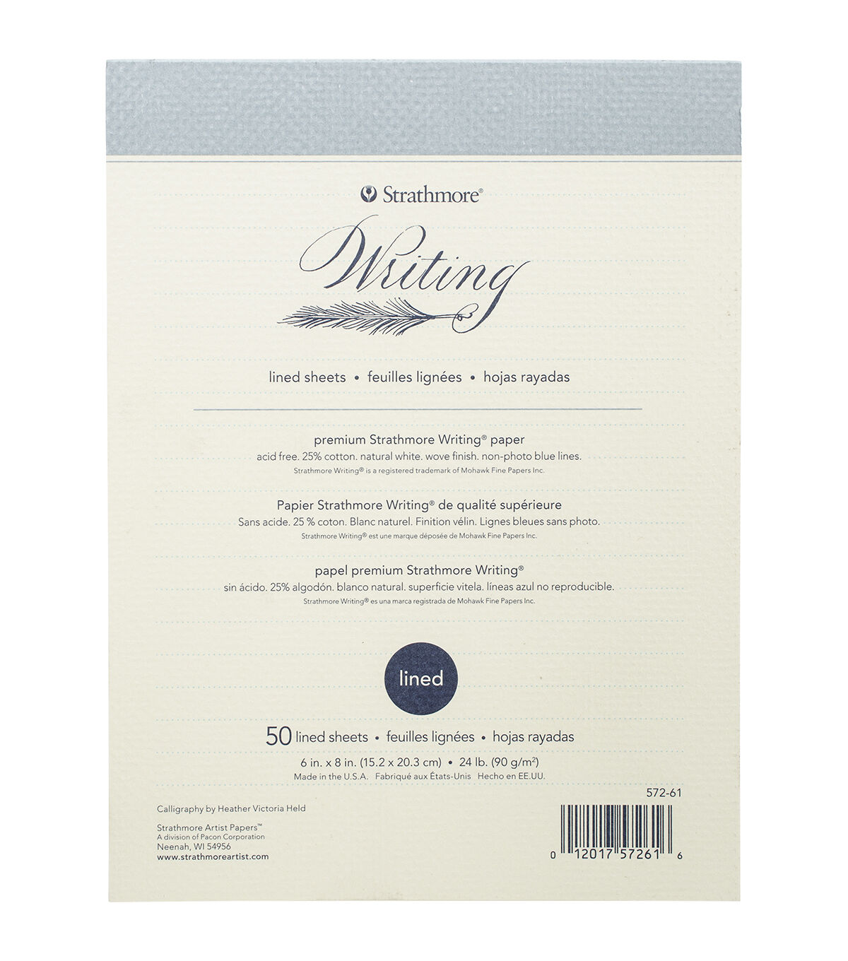 Bring home the Strathmore 6"x8" 50 Sheets Writing Pad-Lined for a smooth and luxurious writing experience. Featuring 25% cotton papers in natural white with a wove finish, this lined writing pad is great for hand lettering, calligraphy and artful correspondence. It comes with a flipover cover that lets you easily remove the sheets. This acid-free luxury writing pad is compatible with a range of inks and writing instruments, sold separately.