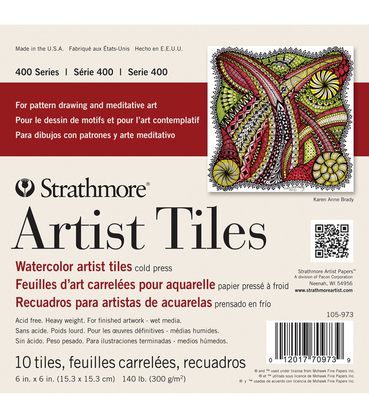 The 400 Series Watercolor artist tiles are appropriate for wet media, pattern drawing and meditative art. Bring this conveniently sized glue bound with you anywhere so that you can create whenever inspiration strikes!