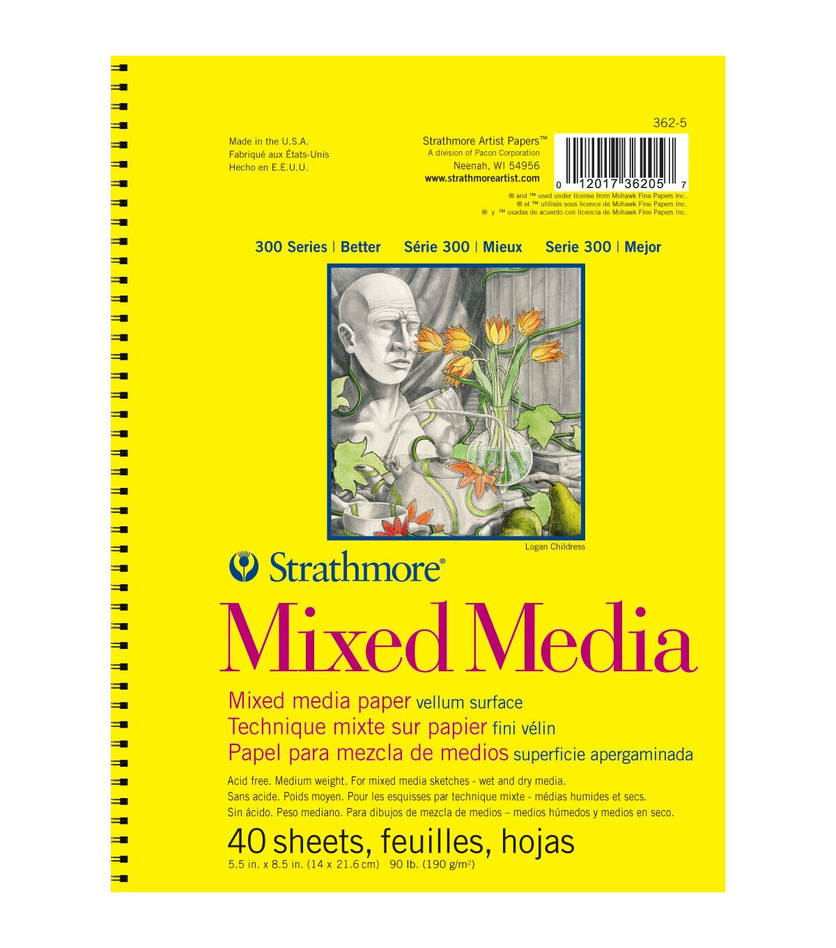 Pro Art-Strathmore Mixed Media Vellum Paper Pad. A medium-weight paper with a vellum surface ideal for mastering wet and dry media techniques. This package contains one 8-1/2x5-1/2 inch spiralbound mixed media pad with forty sheets of 90lb acid free vellum papers. Made in USA.