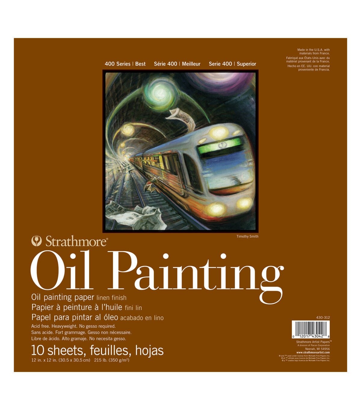 Strathmore Oil Painting paper offers a convenient alternative to canvases or boards for oil paints or oil pastels. No gesso is required to prevent oil saturation - just simply tear out a sheet and start painting. The linen surface mimics canvas while providing texture to help blend and hold layers of paint in place. This paper is intended for the creation of final art pieces.