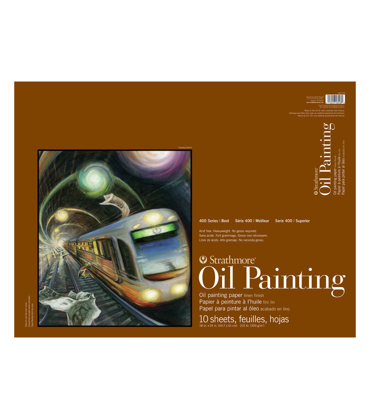 Strathmore Oil Painting paper offers a convenient alternative to canvases or boards for oil paints or oil pastels. No gesso is required to prevent oil saturation - just simply tear out a sheet and start painting. The linen surface mimics canvas while providing texture to help blend and hold layers of paint in place. This paper is intended for the creation of final art pieces.