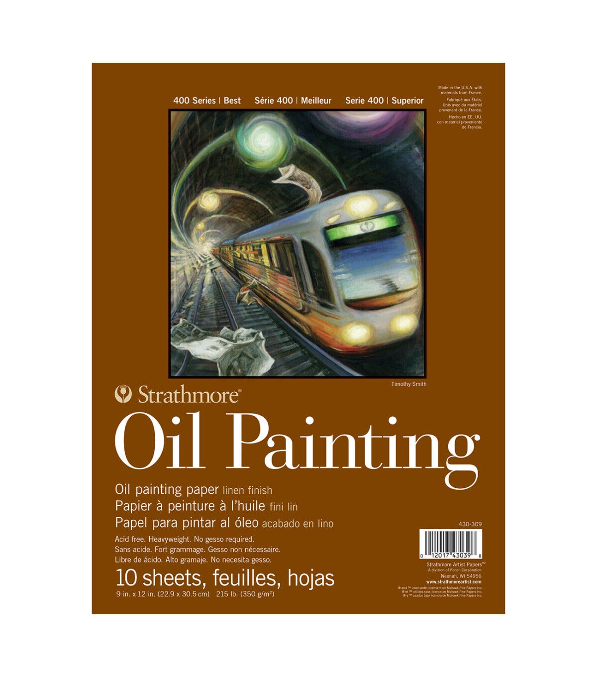 Strathmore Oil Painting paper offers a convenient alternative to canvases or boards for oil paints or oil pastels. No gesso is required to prevent oil saturation - just simply tear out a sheet and start painting. The linen surface mimics canvas while providing texture to help blend and hold layers of paint in place. This paper is intended for the creation of final art pieces.
