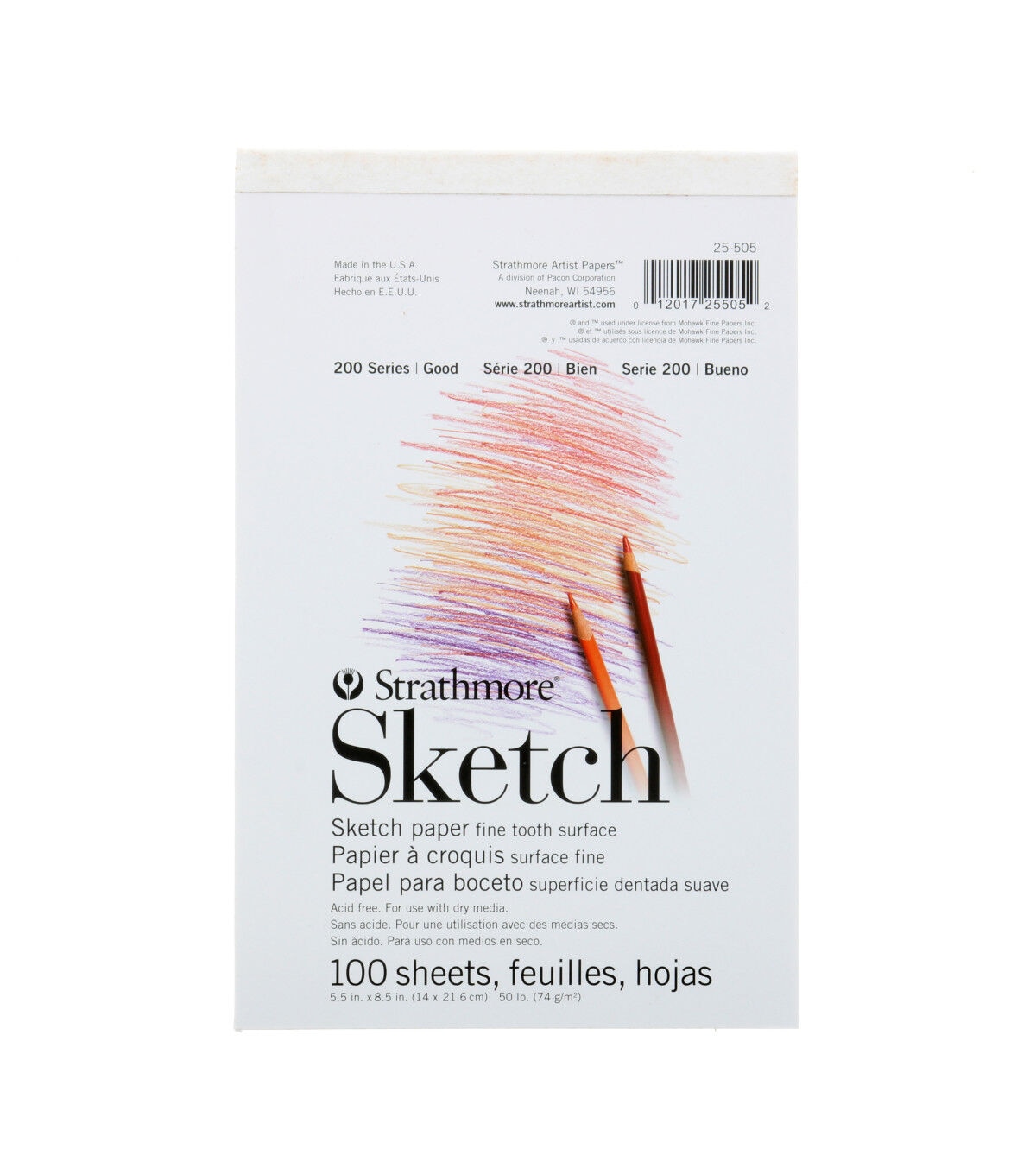 This lightweight drawing paper is excellent for on-location sketching and practicing techniques. Use with pencil, pen and ink, charcoal, pastel and markers.