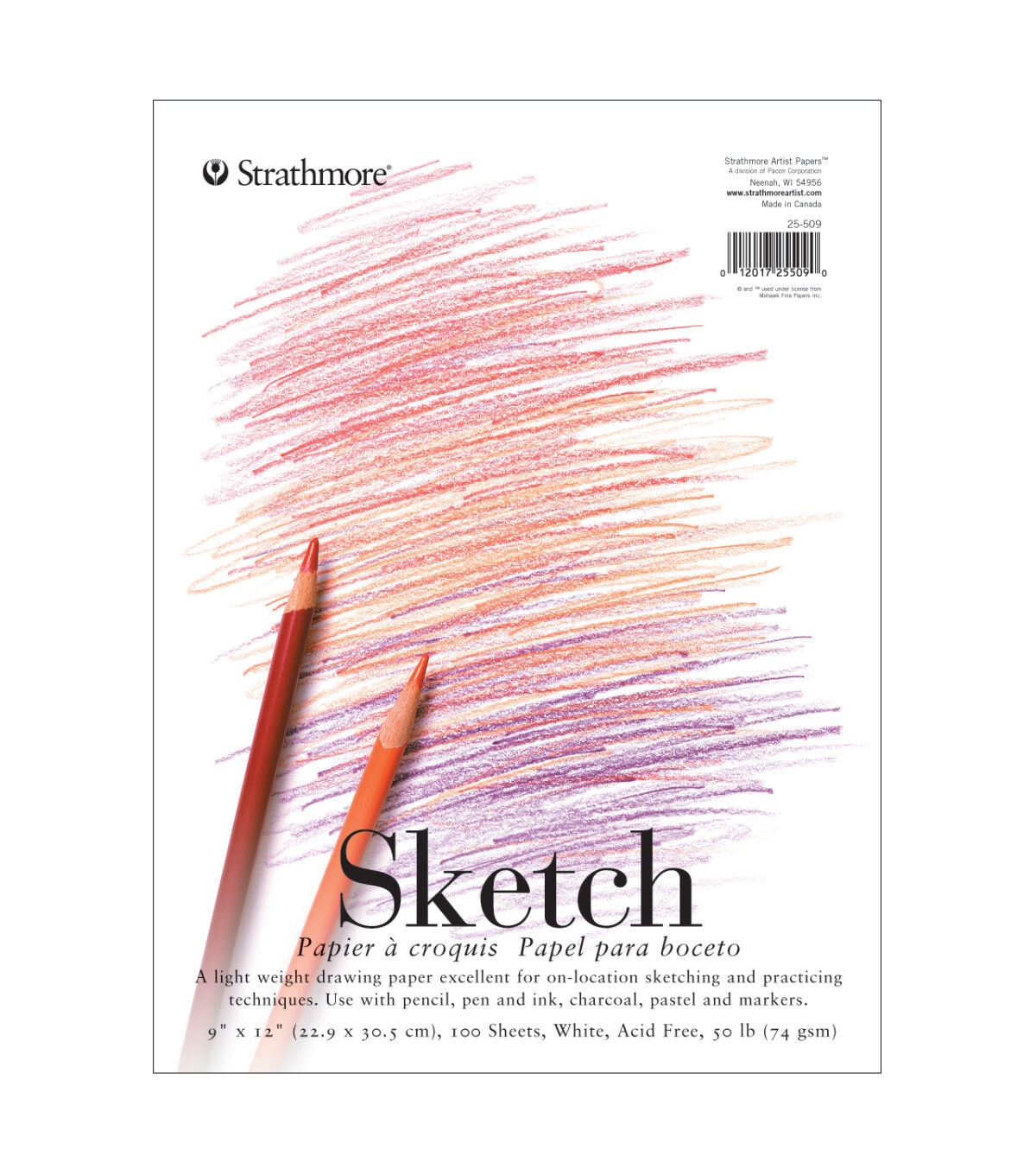 This lightweight drawing paper is excellent for on-location sketching and practicing techniques. Use with pencil, pen and ink, charcoal, pastel and markers.