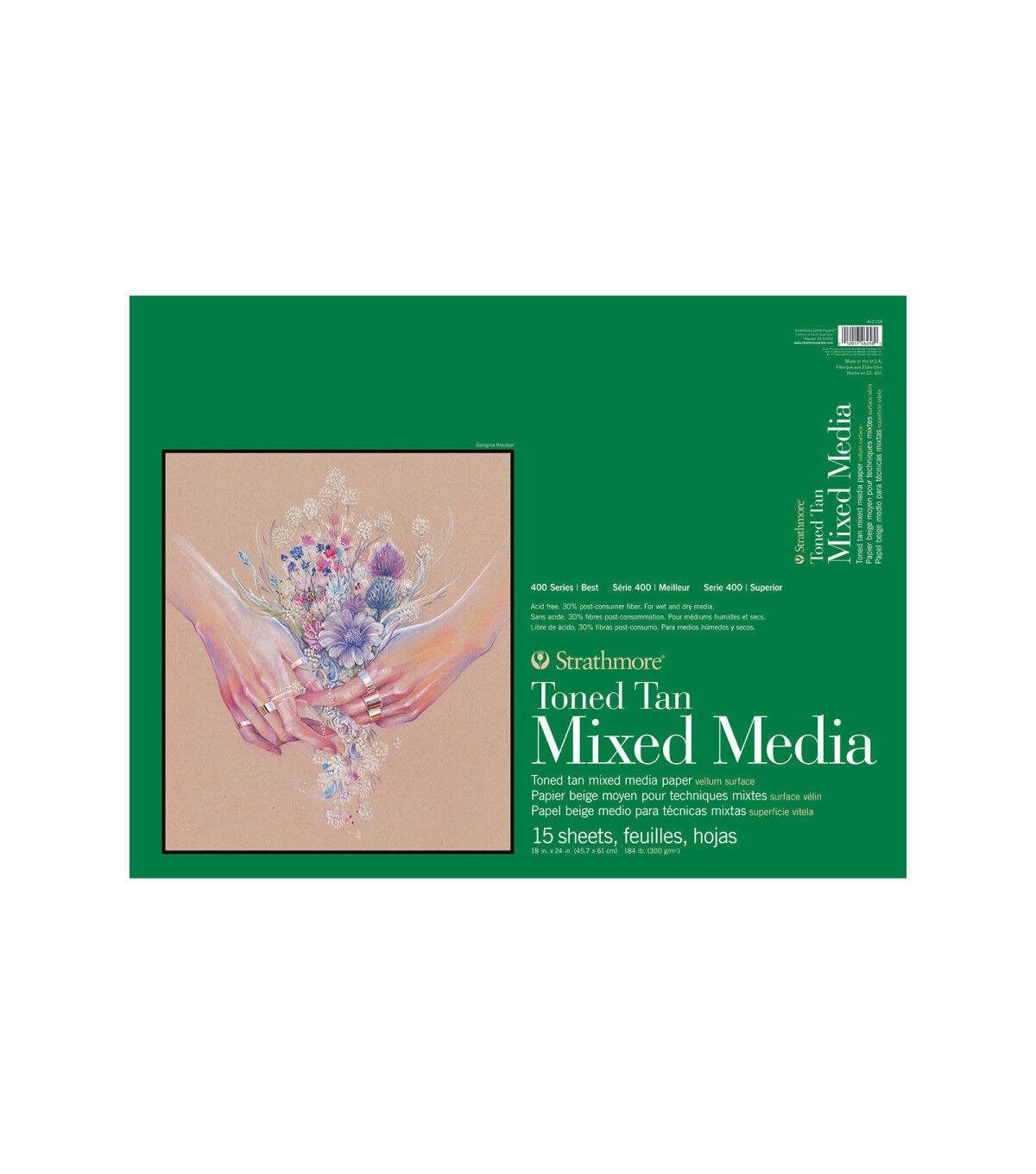 This heavyweight mixed media paper is toned specifically for use with light and dark media; it also combines the characteristics of a watercolor paper and the finish of a drawing sheet, creating a paper that performs for all wet and dry media. It's the perfect hybrid of two of Strathmore's most loved papers: 400 Series Toned Sketch and 400 Series Mixed Media. Flip-over covers feature sheets that stay in the pad yet tear out cleanly. The paper works well with graphite, colored pencils, markers, acrylic, watercolor, gouache, pen and ink, charcoal, gel pens and more.