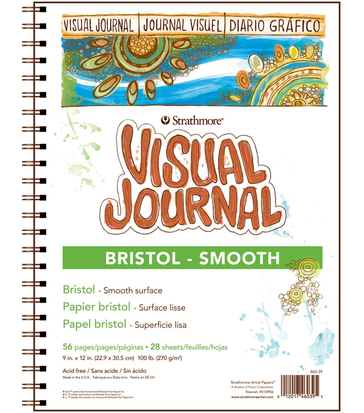 Strathmore-Visual Journal: Bristol Smooth. This package contains one 12x9 inch spiral-bound art pad. It is filled with fifty-six pages of 100-pound Bristol paper with a smooth surface. It is excellent for traditional and specialty pen and ink techniques, marker, and collage. Acid free. Made in USA.