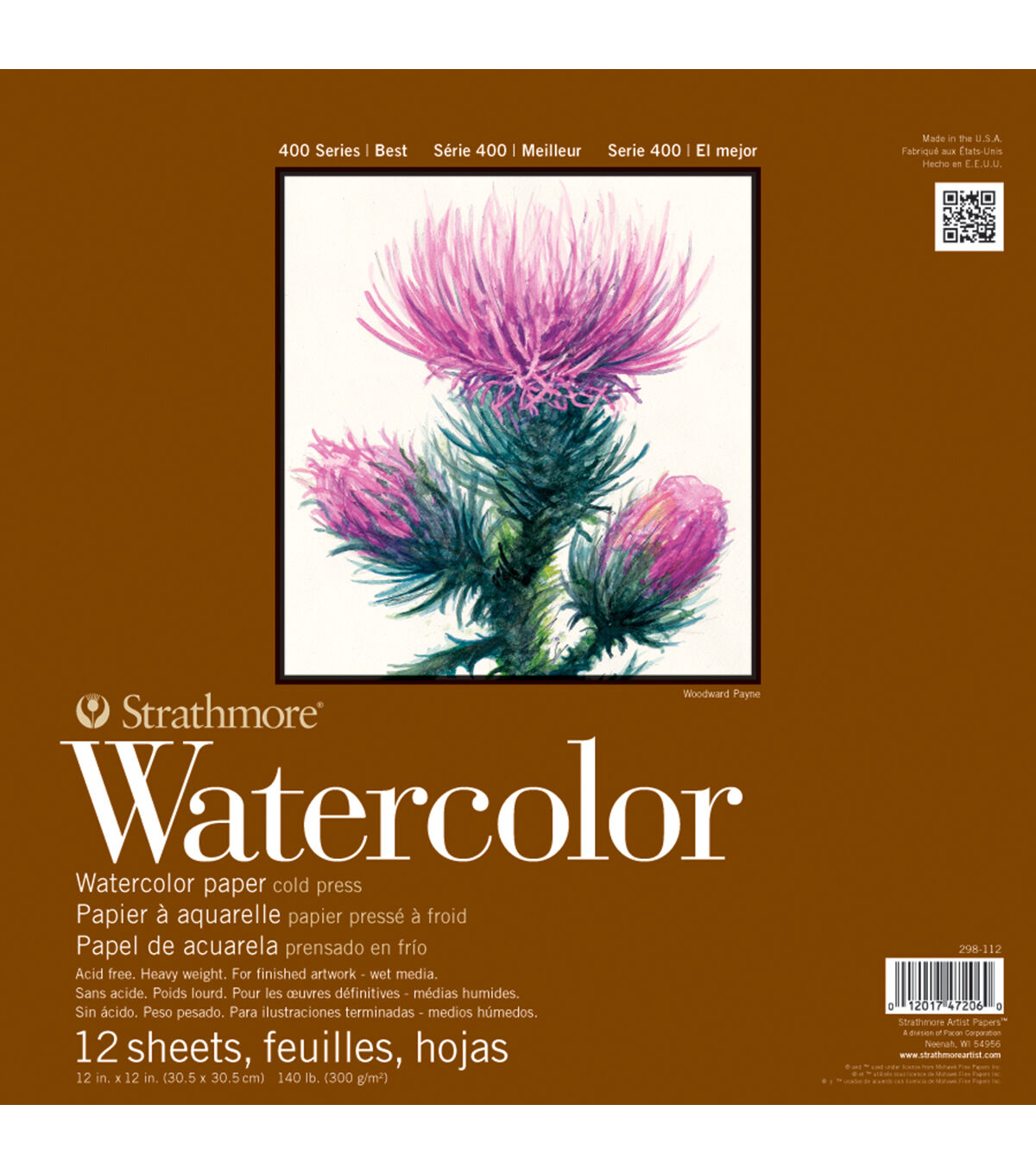Pro Art-Strathmore Watercolor Paper Pad. A heavy-weight paper with a cold press finish ideal for mastering wet media techniques. This package contains one 8-1/2x5-1/5 inch watercolor pad with twelve sheets of 140lb acid free cold press papers. Made in USA.