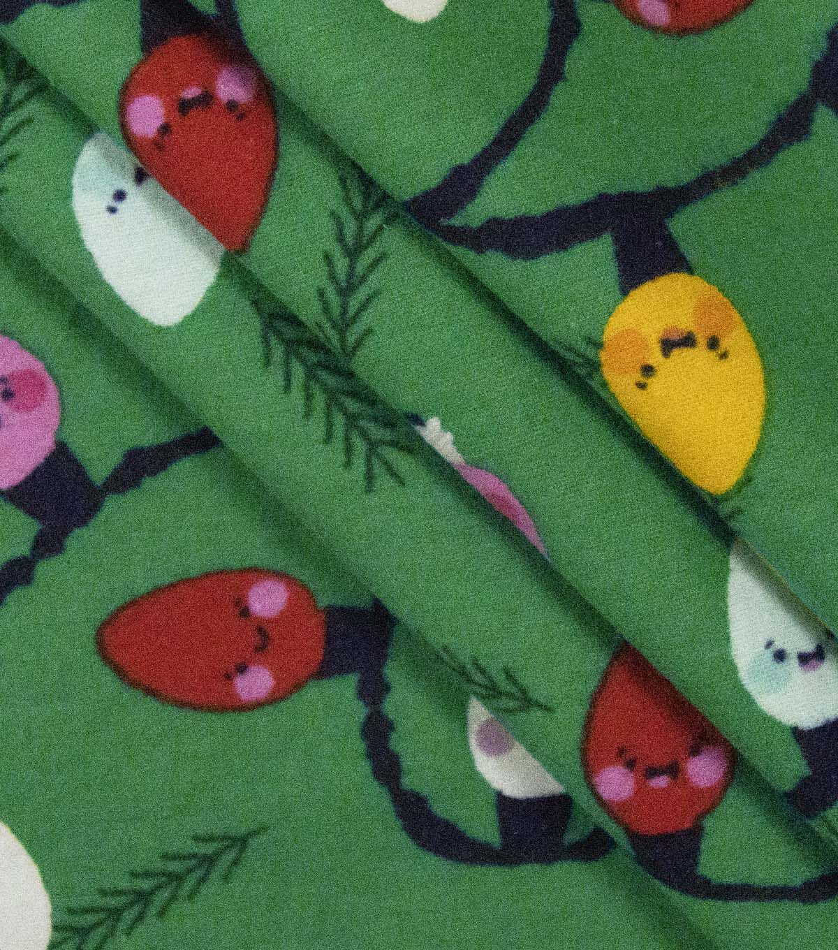 • String Lights on Green Super Snuggle Christmas Flannel Fabric by POP!