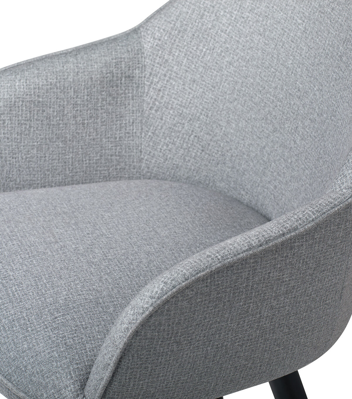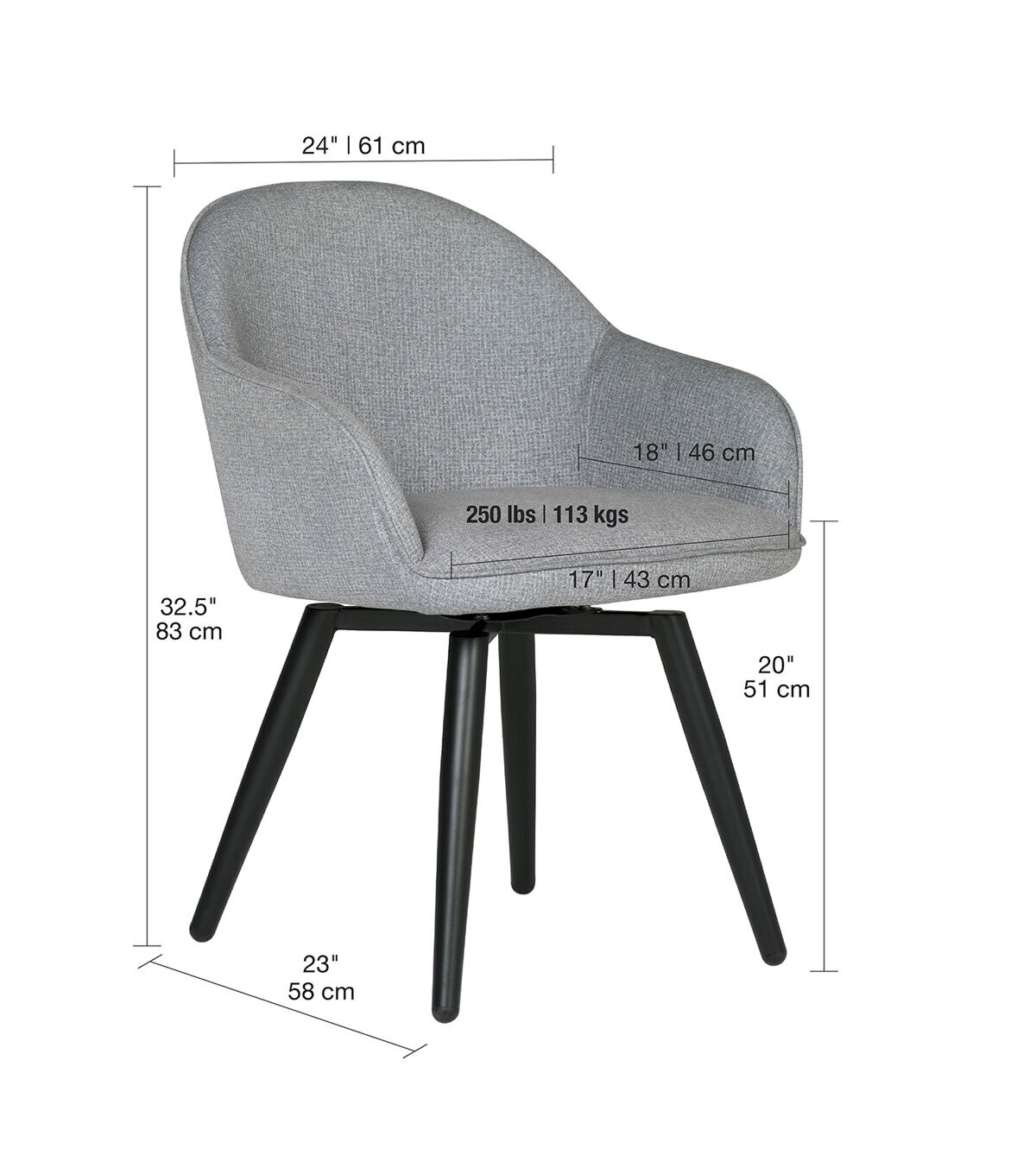 The Dome Swivel Dining / Office Chair with Arms by Studio Designs Home is unique in its solid, metal frame and leg construction. Conventional 4-legged chairs have wood legs that loosen and break over time, but that won’t happen with this chair. The Dome Swivel Chair offers a firm foam seat, arms and back that is upholstered with an ultra-soft, polyester fabric with a classic tweed look. This unique fabric is cool and plush to the touch. The flared upholstered arms and back are connected to cradle you for added comfort. The upholstery is easy to spot clean and durable enough for years of use. Available in 3 neutral colors to flawlessly complement your home’s décor