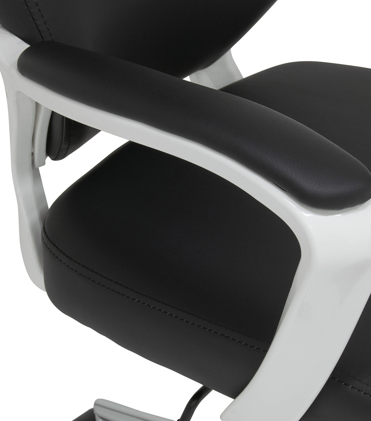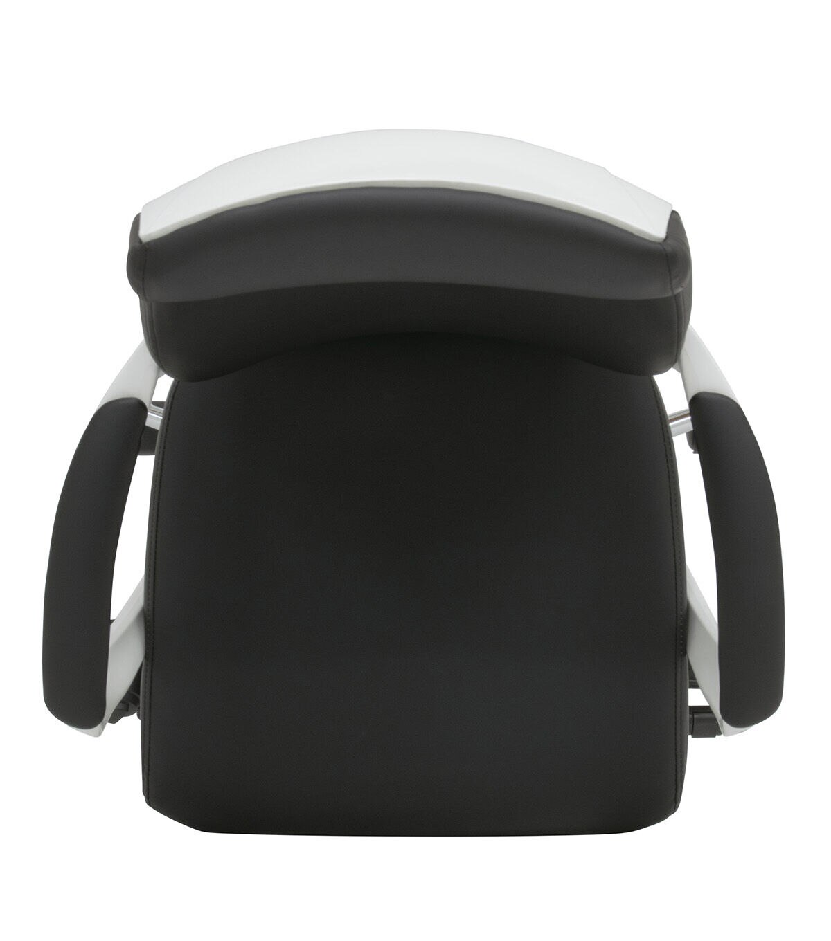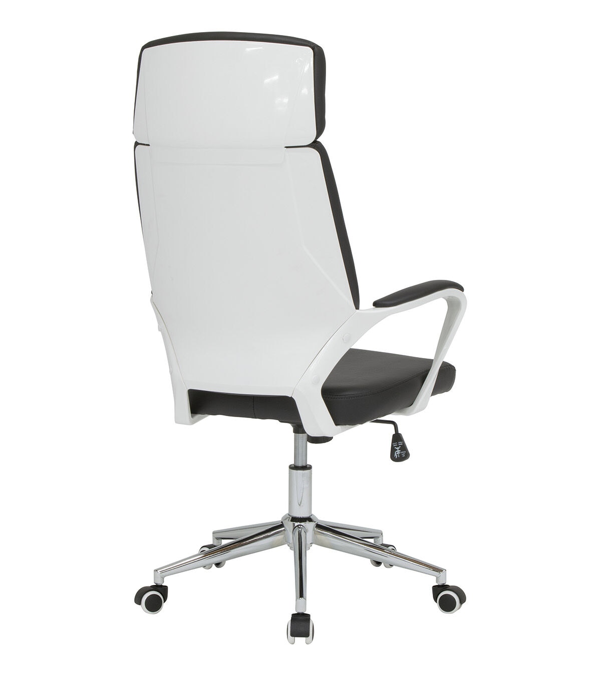 - The Glossy White Frame and Modern, Tailored, Vegan Leather Covered Cushions Combine with the Chrome 5- Star Base for a Stylish Addition to Your Home Office