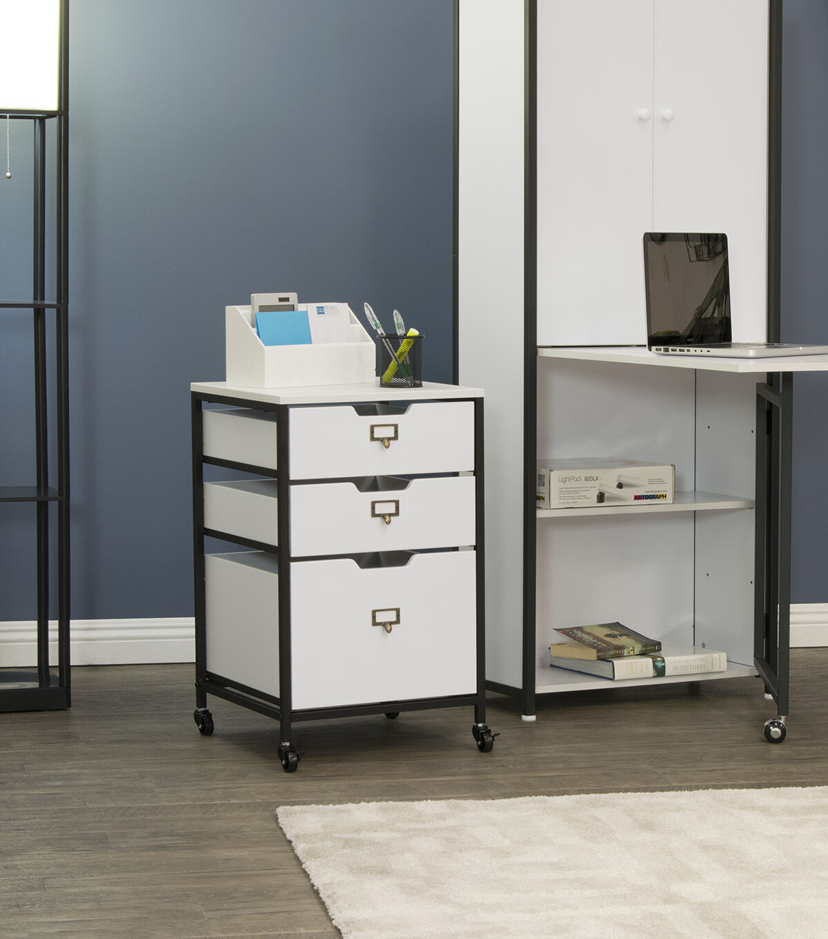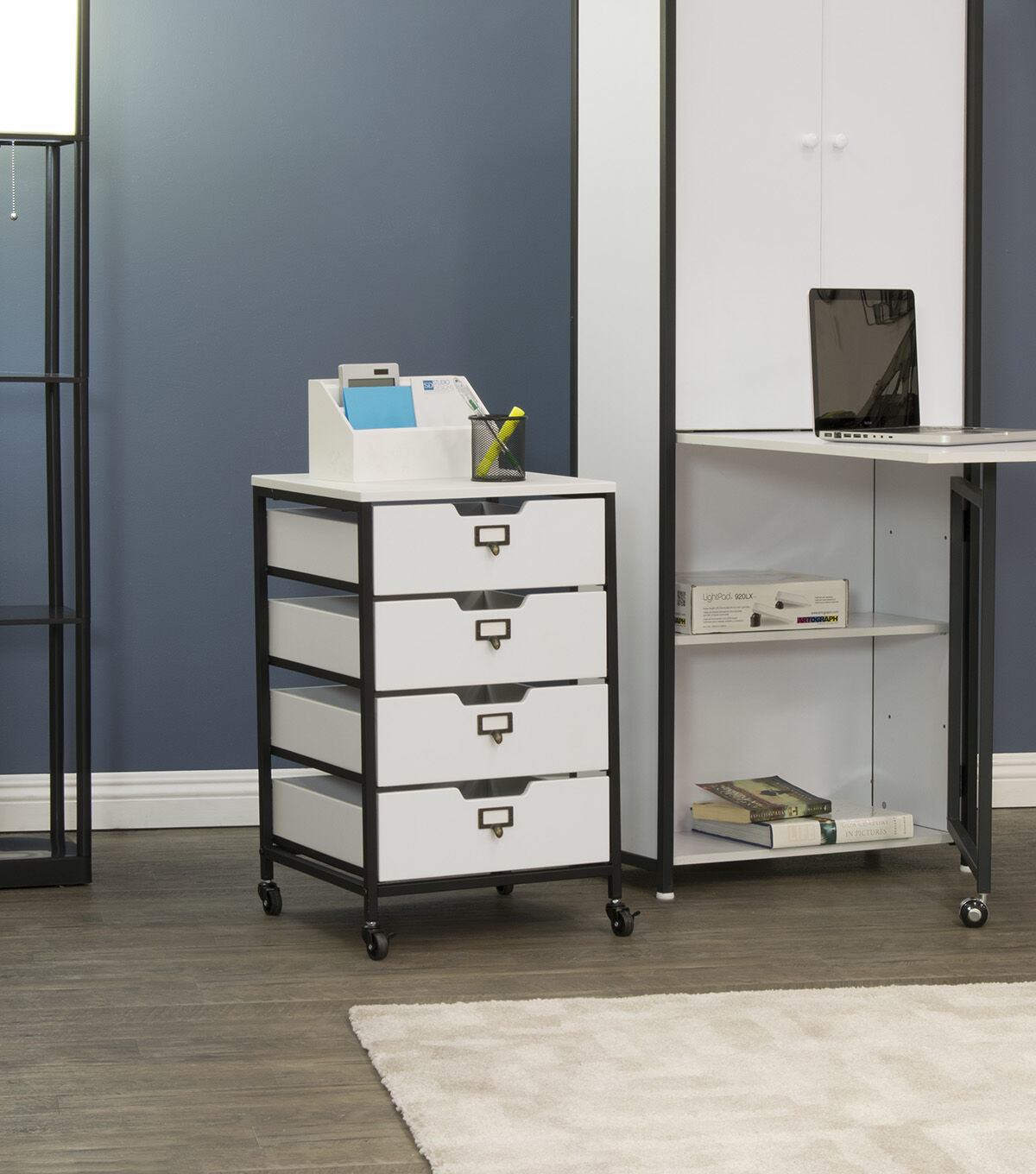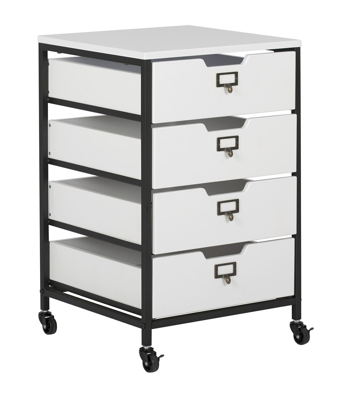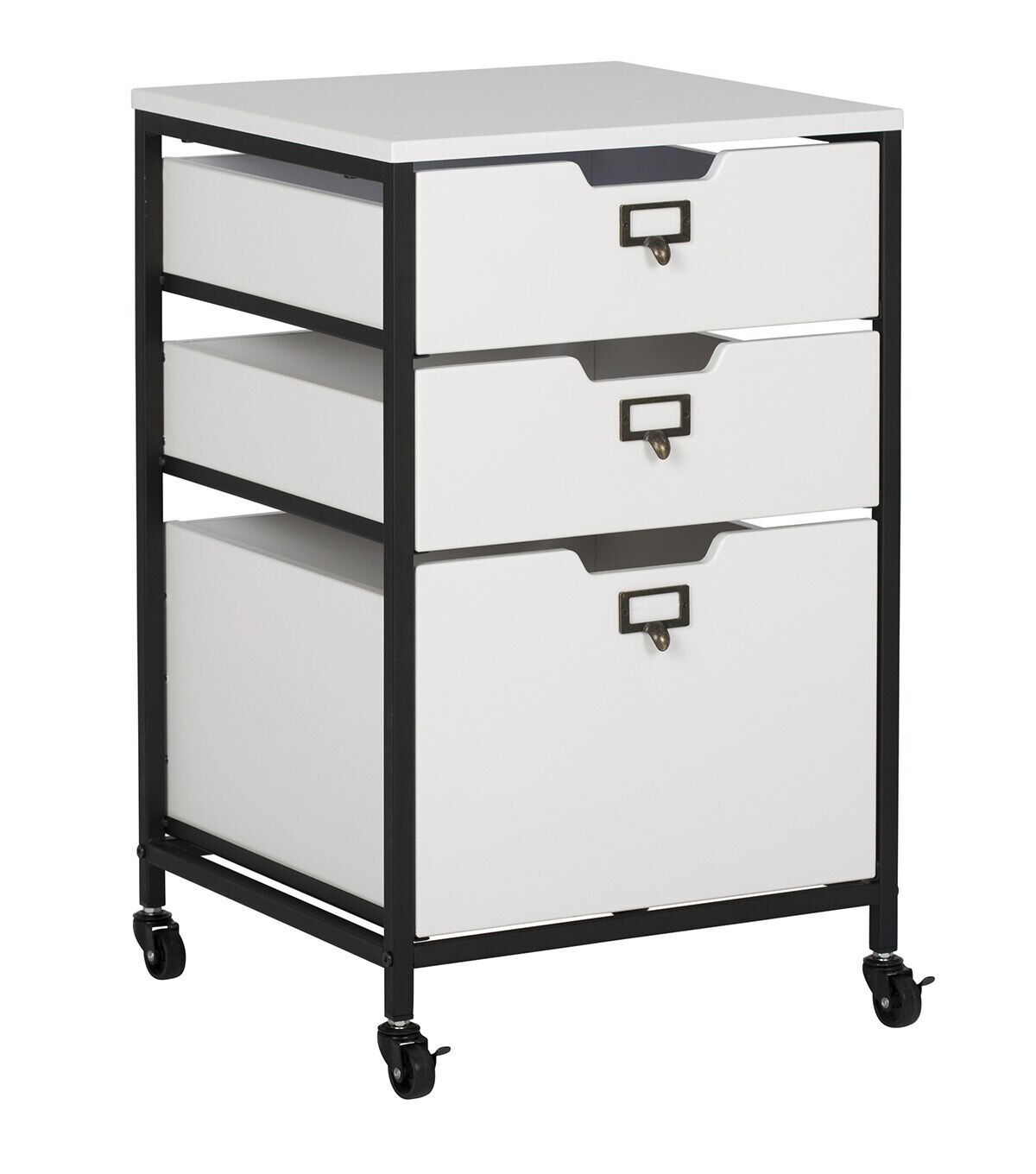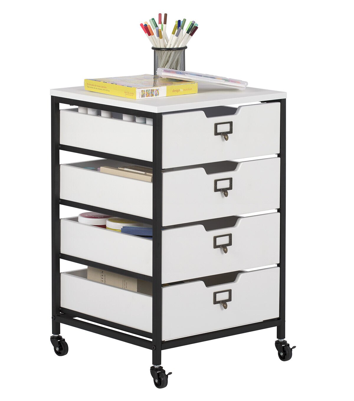 Our Sew Ready line of mobile storage carts offer an organized space for the many tools and accessories that can clutter a craft room. These versatile carts can be used in almost any room in the house: bathrooms, kitchen, playroom, home office or laundry room. The casters make it easy to move them across the room or from room to room. The front casters can be locked to keep it in place during projects. All drawers have a combination metal pull with label holder so you can list the contents inside. These carts are available in three configurations: 3-drawer (Item # 10223), 4-drawer (Item # 10224) or 3 open bins (Item # 10225).