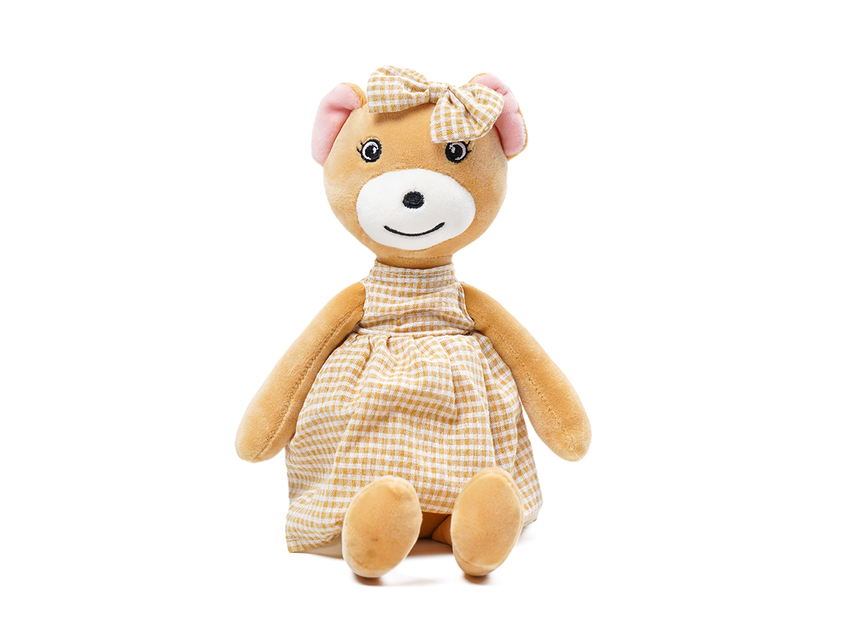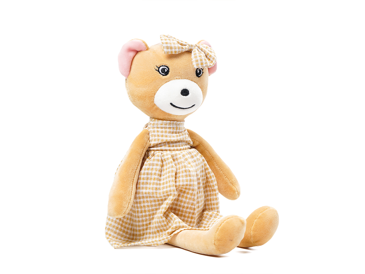 Very soft and in shades of honey, with its touches of golden glitter, this adorable teddy bear will watch over your little one so that every moment resembles a sweet dream.