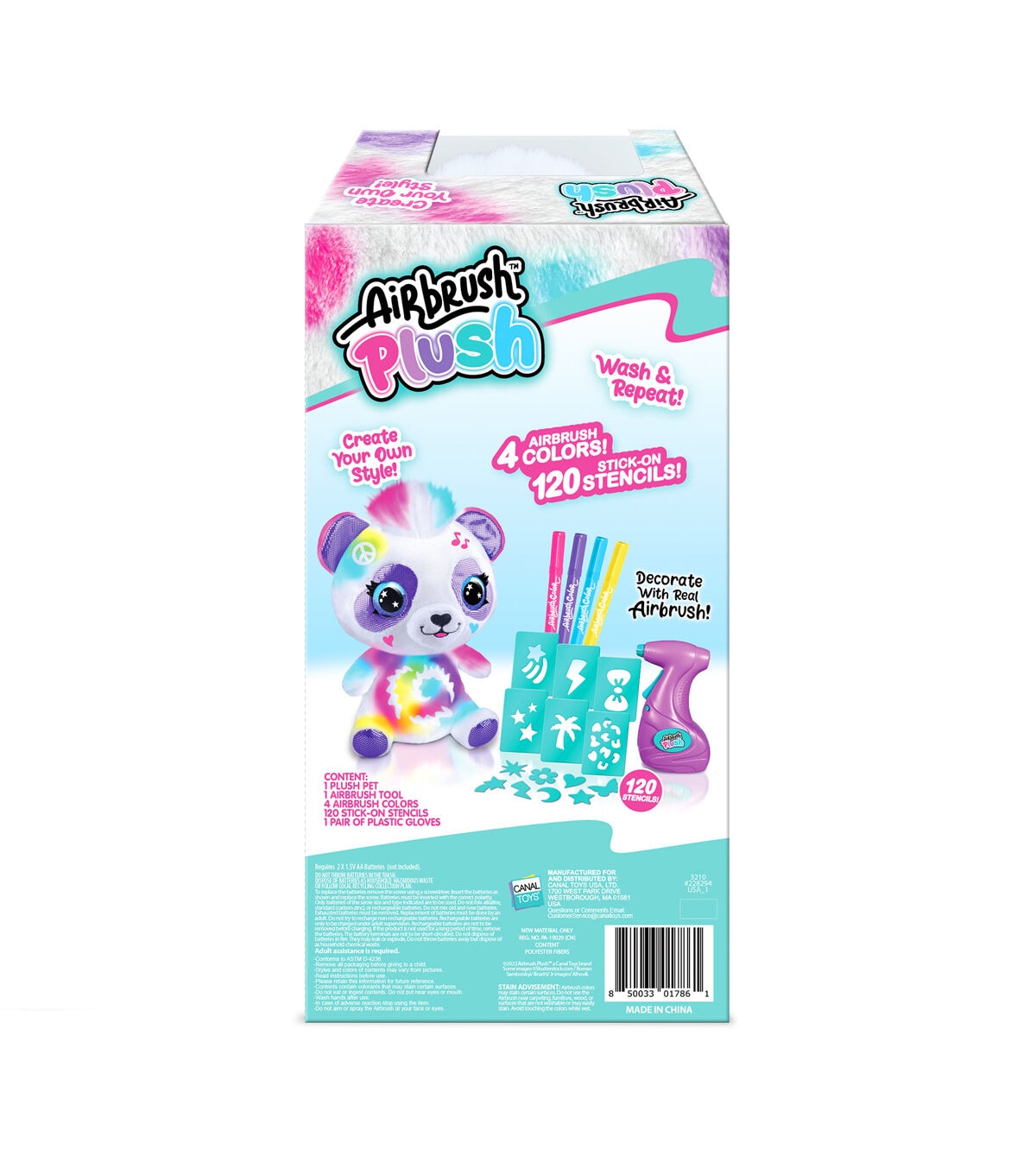 Customize your own adorable and soft plush unicorn! Design and create your own multicolored plush with the battery-powered airbrush gun and stick-on stencils. The real airbrush gun makes it so easy and satisfying to create trendy and cute multicolored plushies! This collectible plush looks brand new even after being washed, so the possibilities are endless. Redesign and update your plush with trendy and fun themes as your mood and style change!