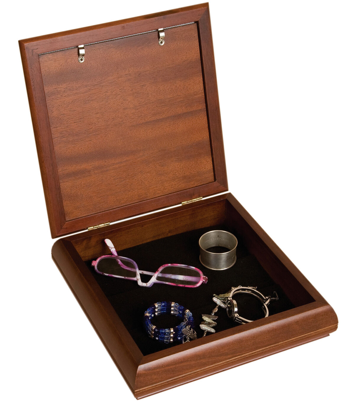 - Dimensions: 7.5 x 7.5 inches (visible design area), 9.5 x 9.5 x 2.75 inches (box) & 8.18 x 8.18 x 1.63 inches (inner compartment)