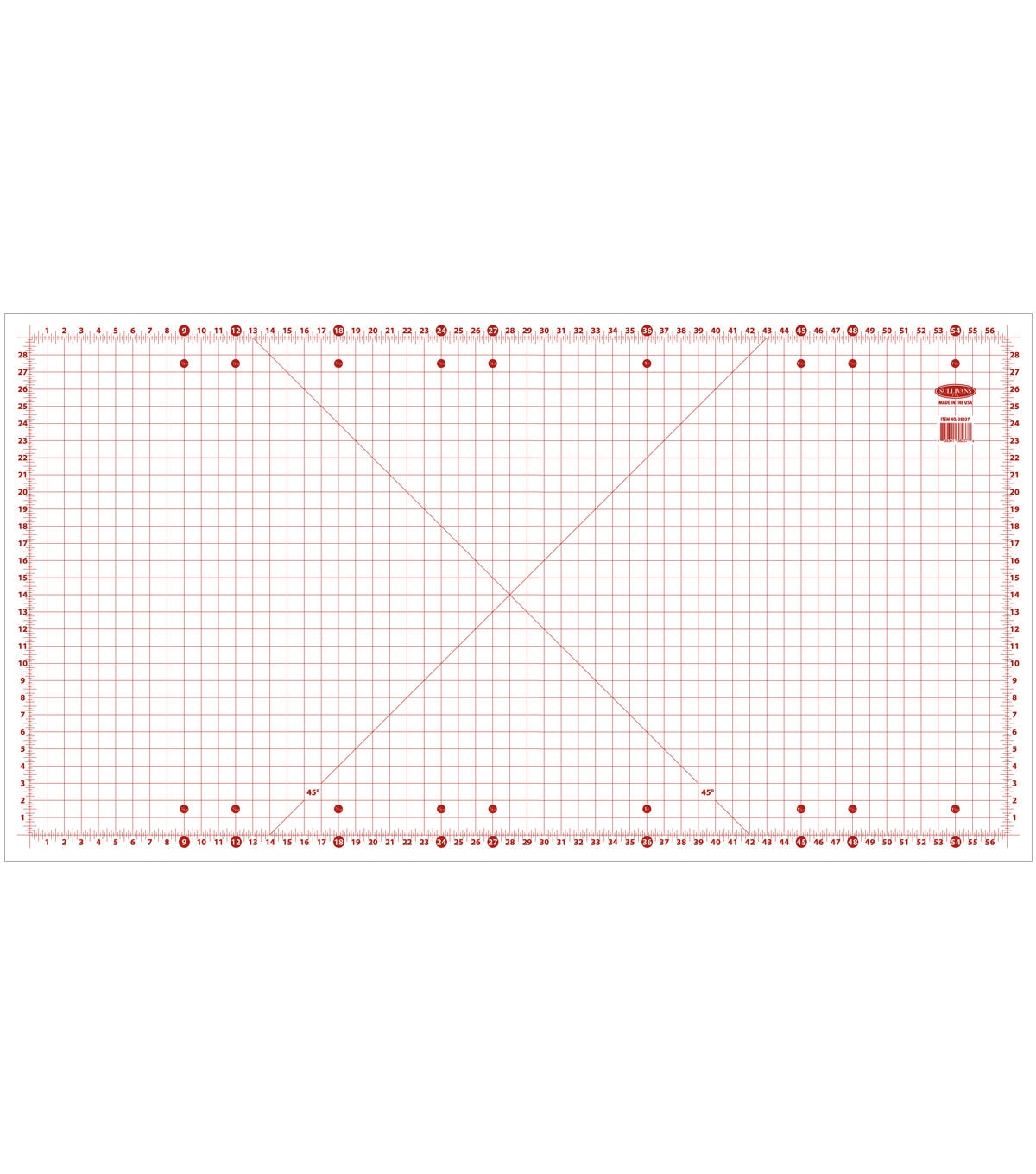 - Cutting mat measures 32” x 60” with a 29” x 57” grid. Measures 0.085” thick