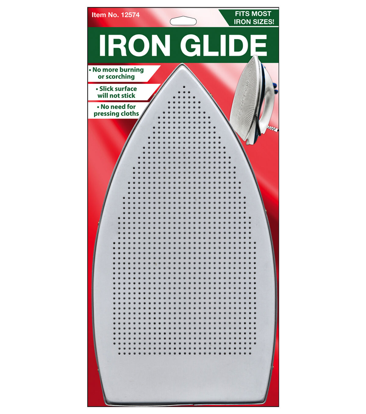 With the iron glide, you can now iron all of your fabrics without worry. Delicate silks and tough cottons can be ironed with any temperature setting without pressing cloths! The Teflon coating makes the ironing cover extremely slick, protecting all sorts of material from harm that can come from conventional irons. The smooth edges will not damage fabrics by catching on to seams and corners. Fits most iron sizes!