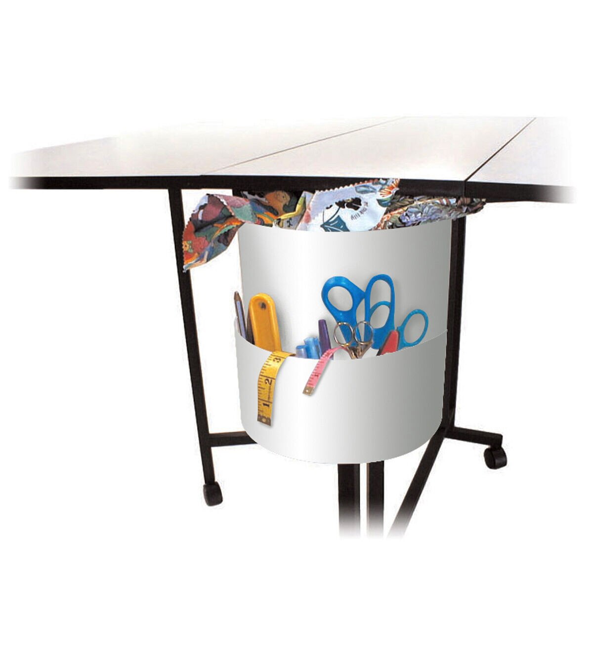 With the Home hobby scrap caddy, you can keep all of your tools and scraps at hand. This plastic attachment has four pockets for scissors, pens, cutters, and more. It’s a clever and fun way to keep scraps and larger items in. It snaps securely onto the table leg just under the center of the Sullivans Home Hobby Table with hook and loop closure.